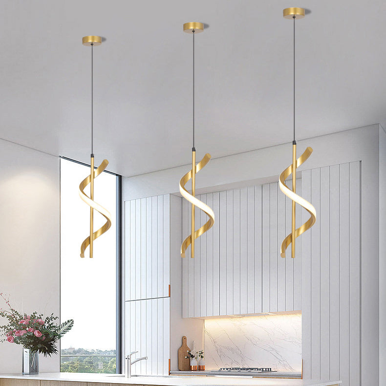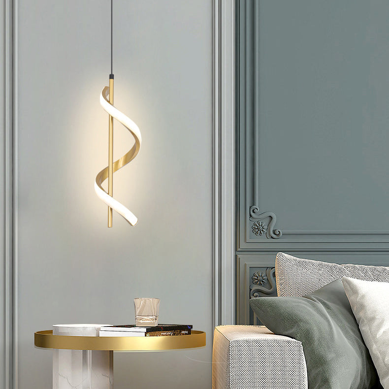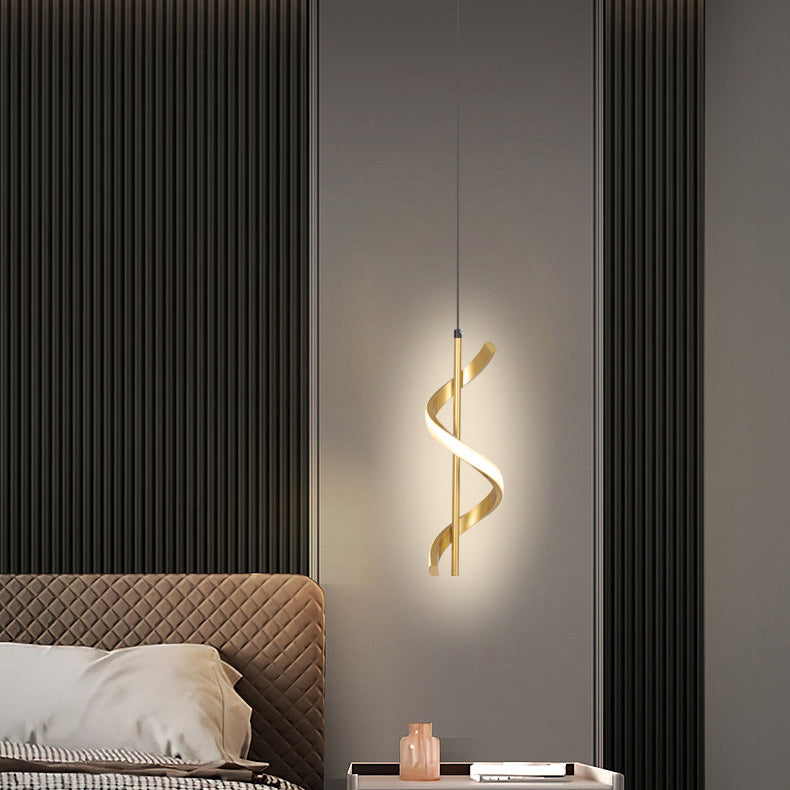 Modern Minimalist Cylinder Spiral Iron Silicone LED Pendant Light For Bedroom