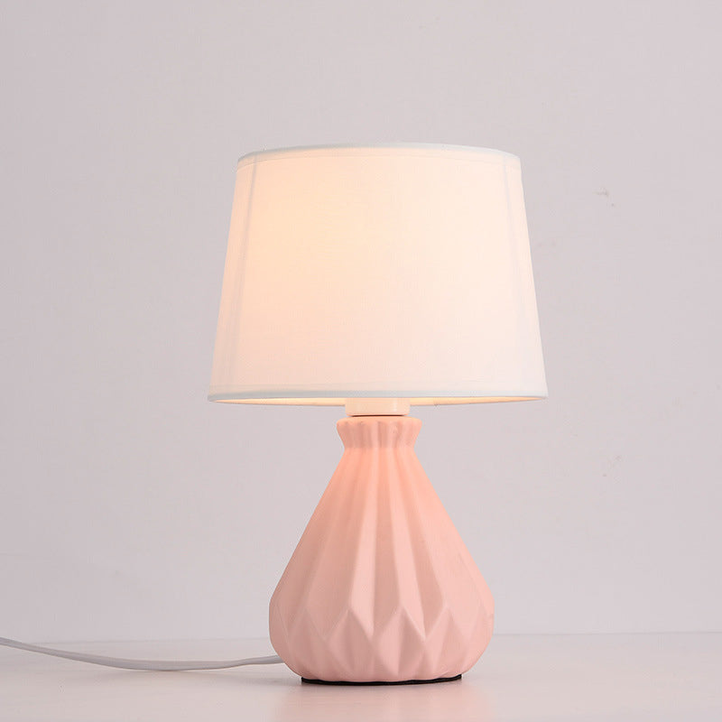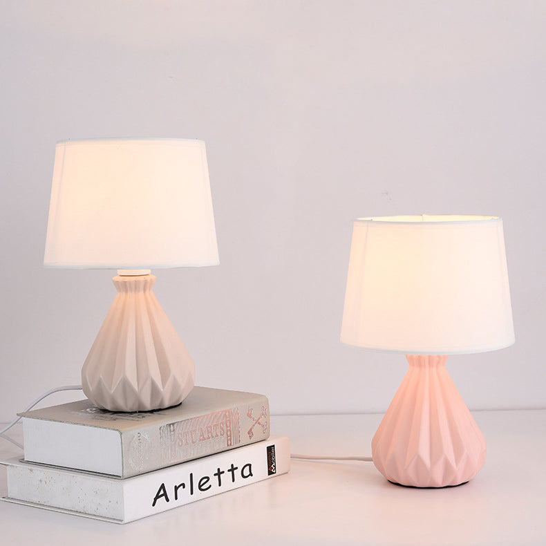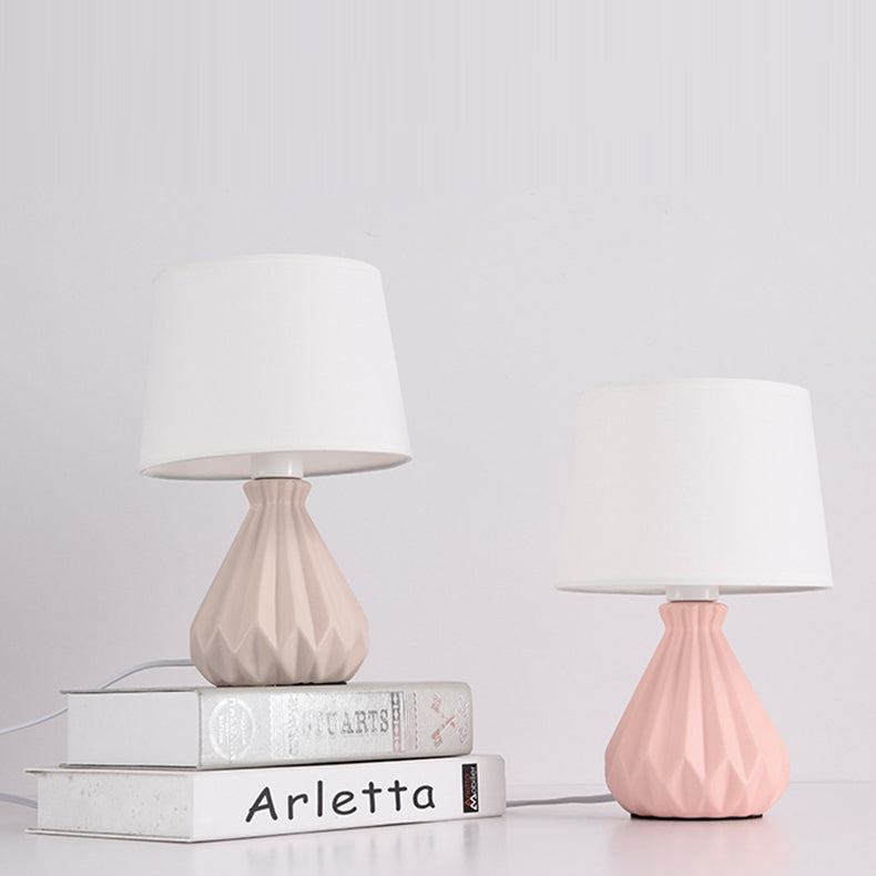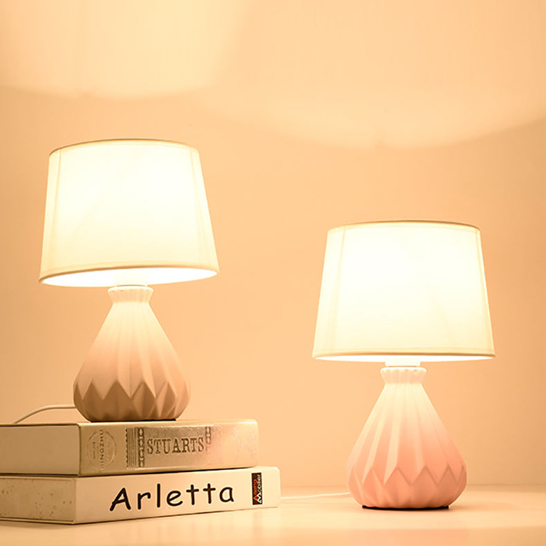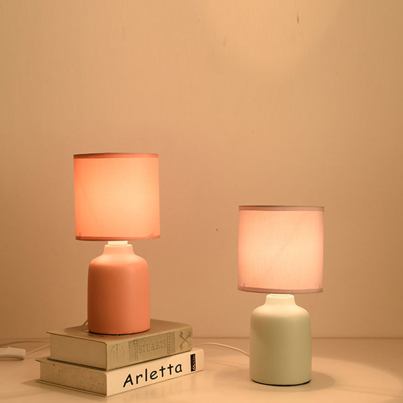 Modern Minimalist Cylindrical Cone Ceramic Fabric 1-Light Table Lamp For Bedroom