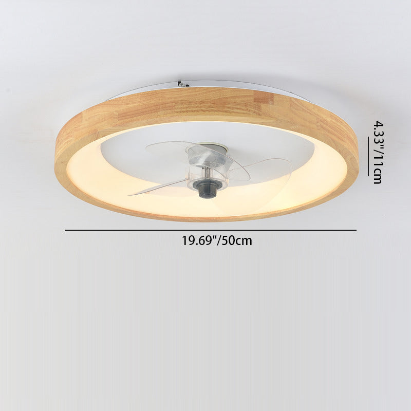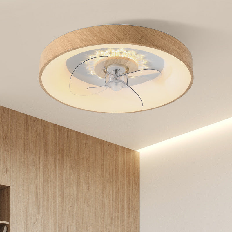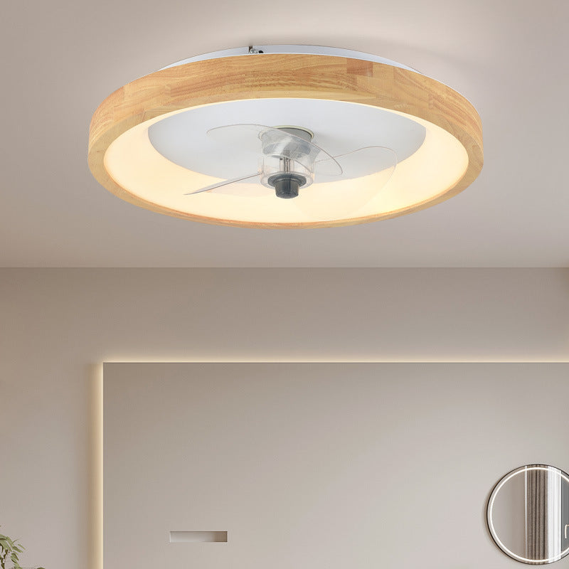 Modern Minimalist Fan Round Dome Wood Acrylic LED Flush Mount Ceiling Fan Light For Bedroom