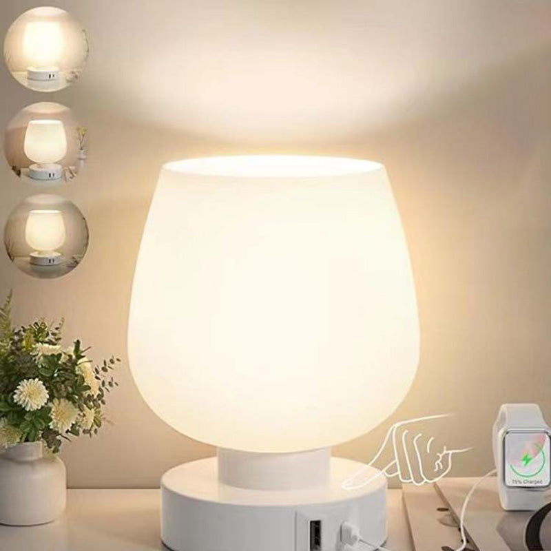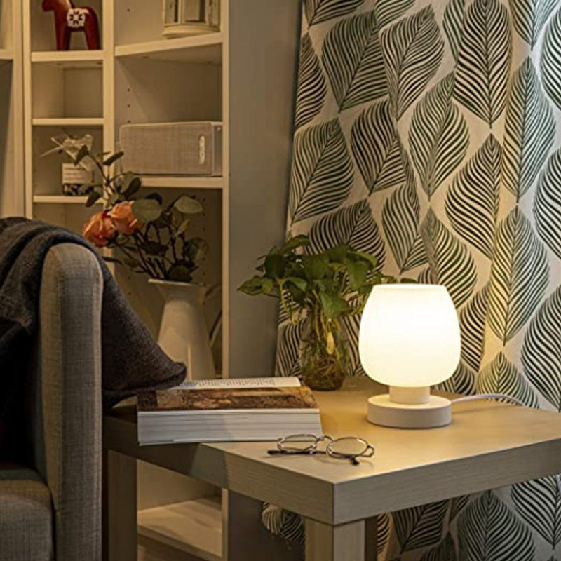 Modern Minimalist Flat Round Glass Iron 1-Light Table Lamp For Living Room