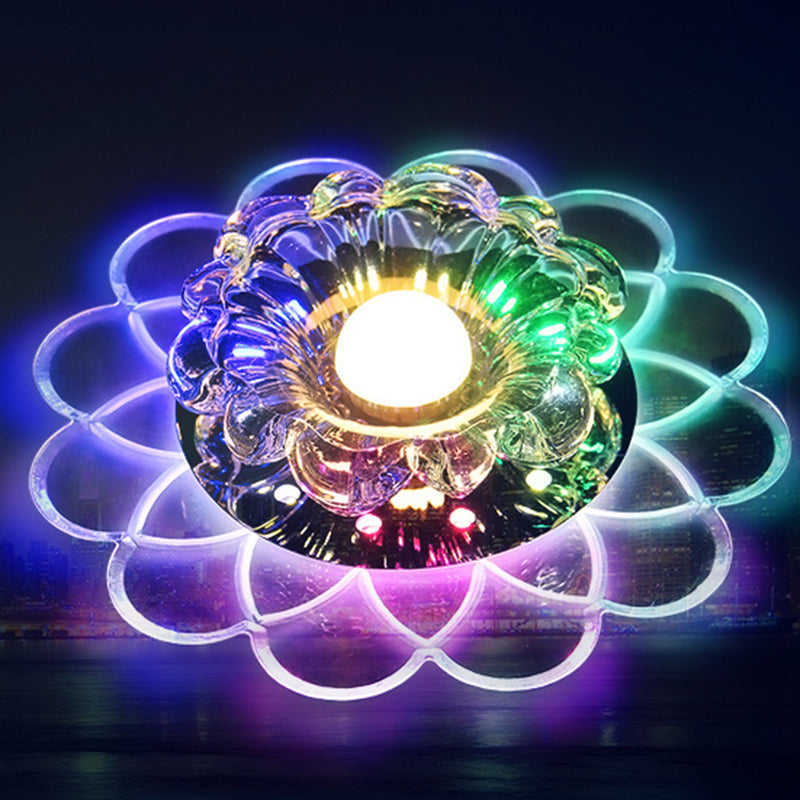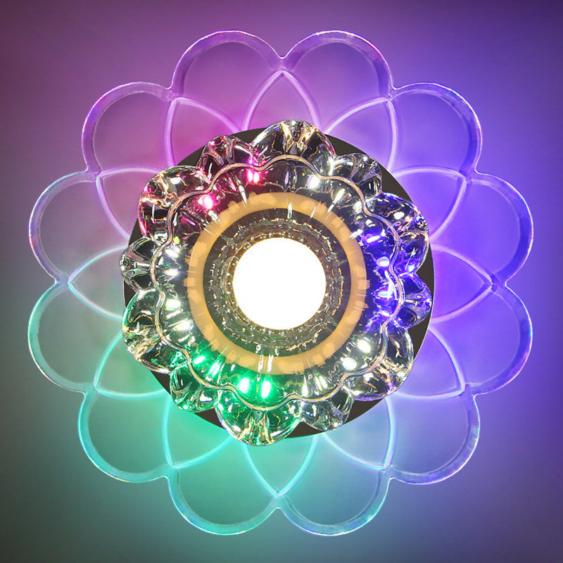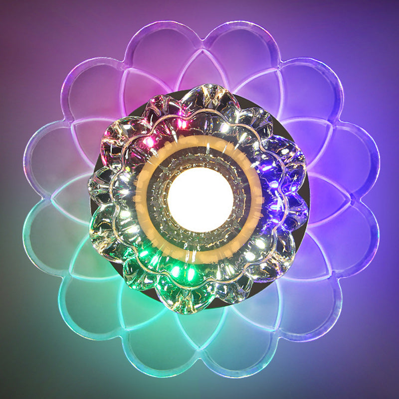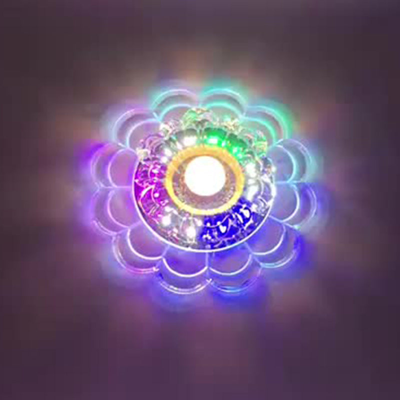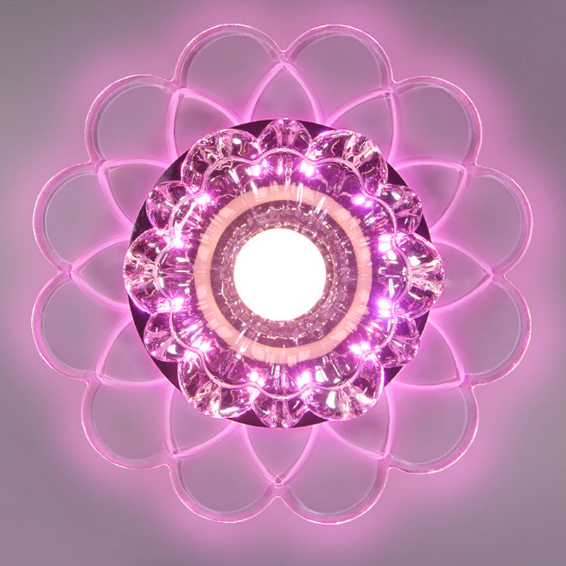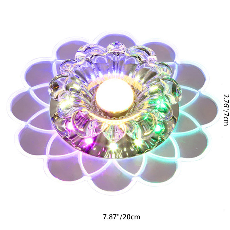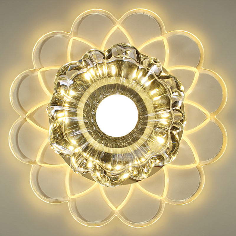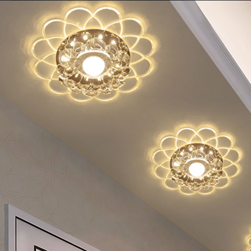 Modern Minimalist Flower Round Crystal Iron LED Flush Mount Ceiling Light For Bedroom