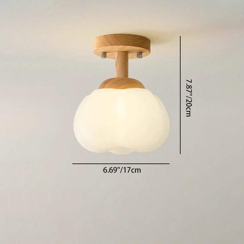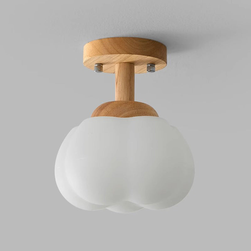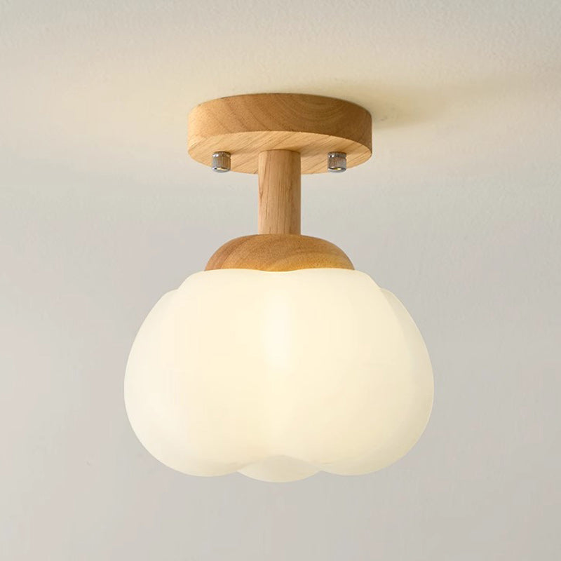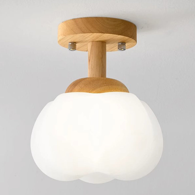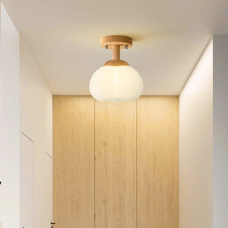 Modern Minimalist Flower Wood Plastic 1-Light Semi-Flush Mount Ceiling Light For Hallway