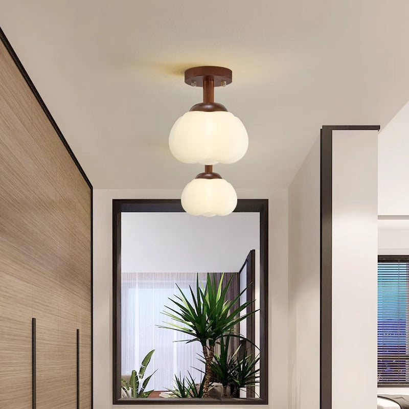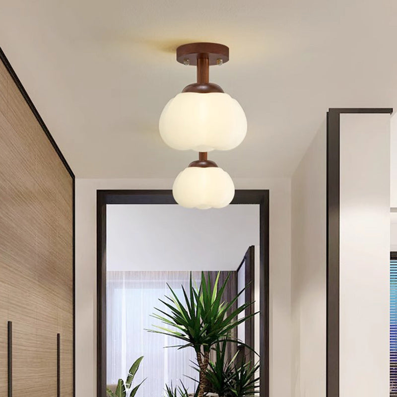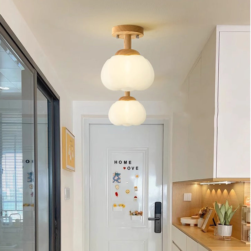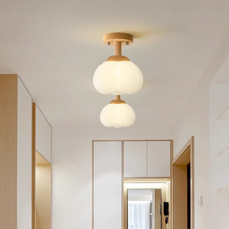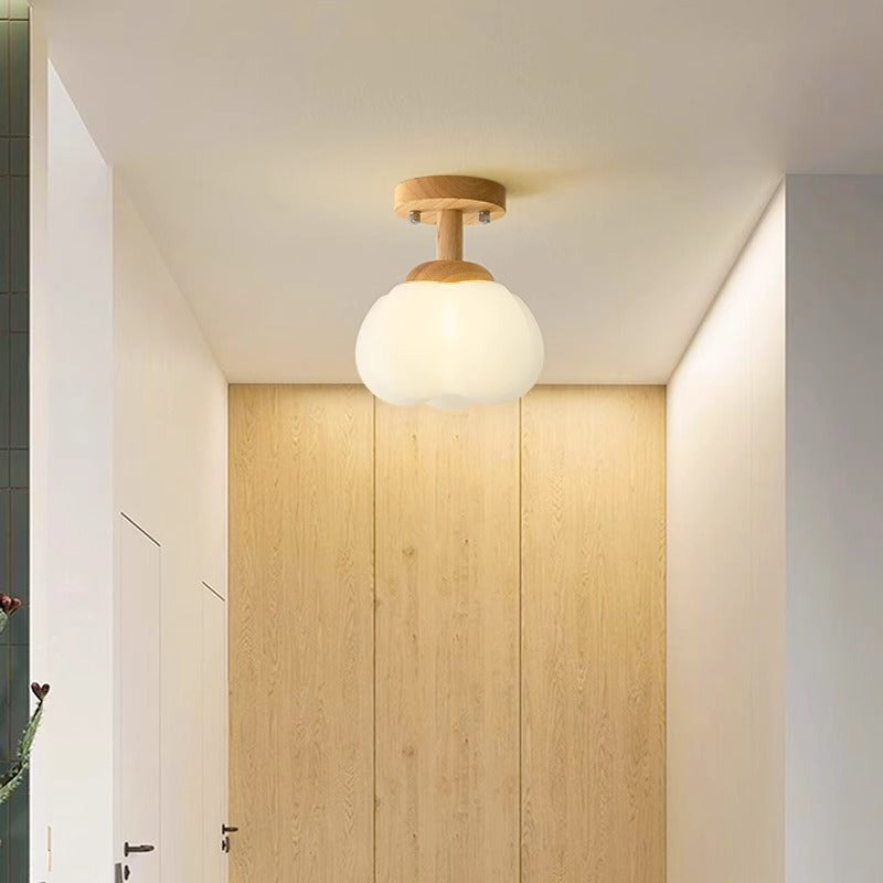 Modern Minimalist Flower Wood Plastic 1-Light Semi-Flush Mount Ceiling Light For Hallway