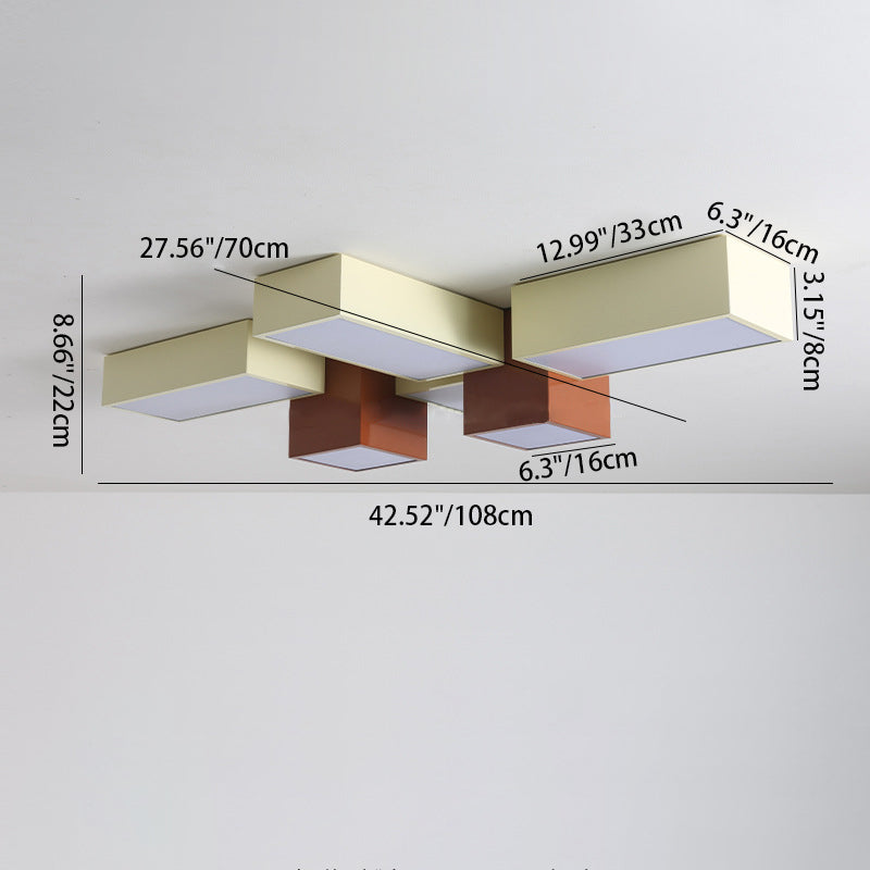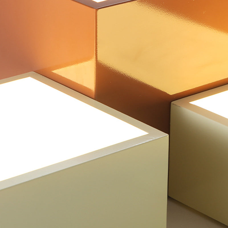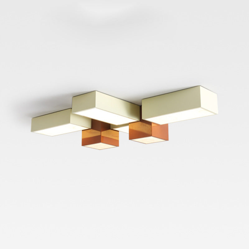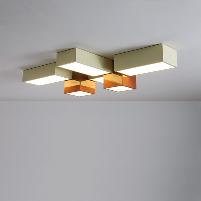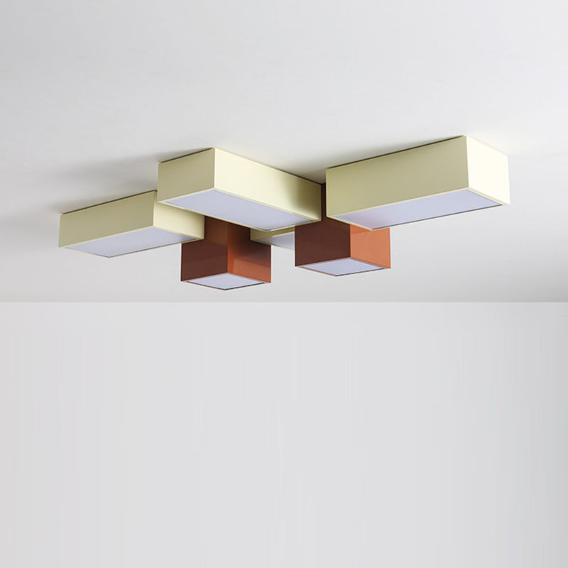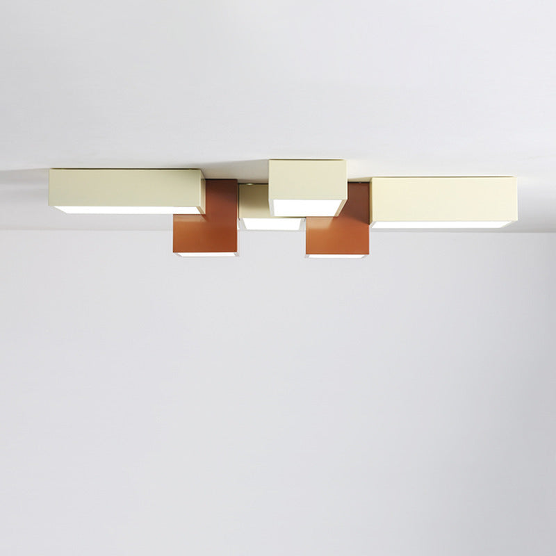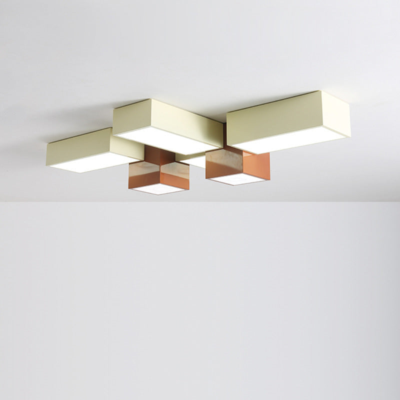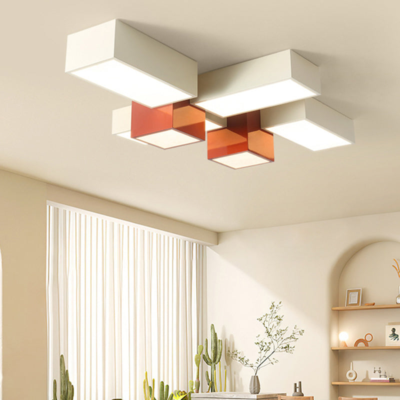 Modern Minimalist Geometric Combination Square Iron Silicone LED Flush Mount Ceiling Light For Living Room