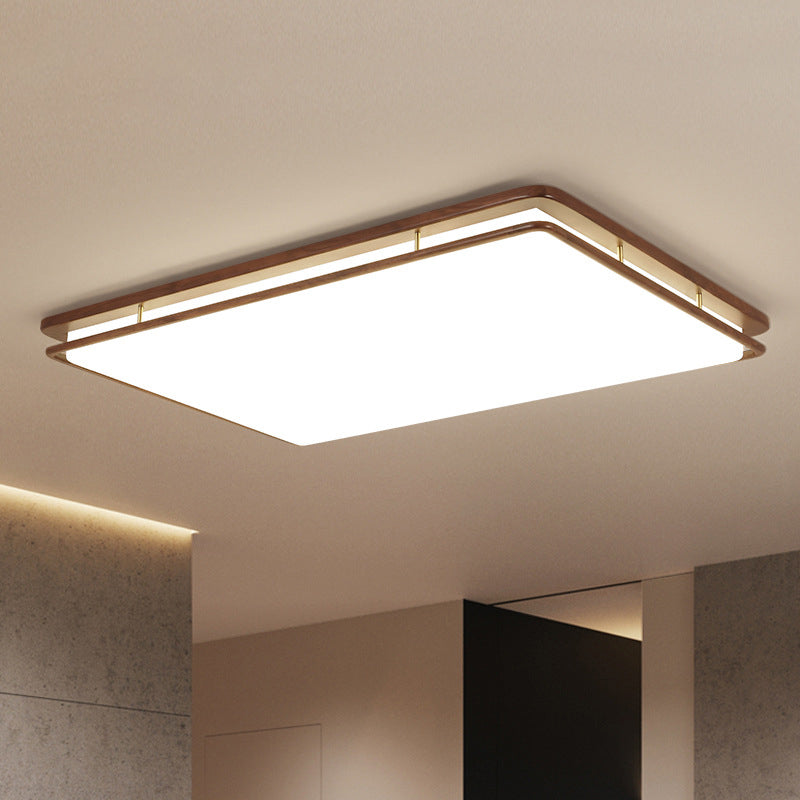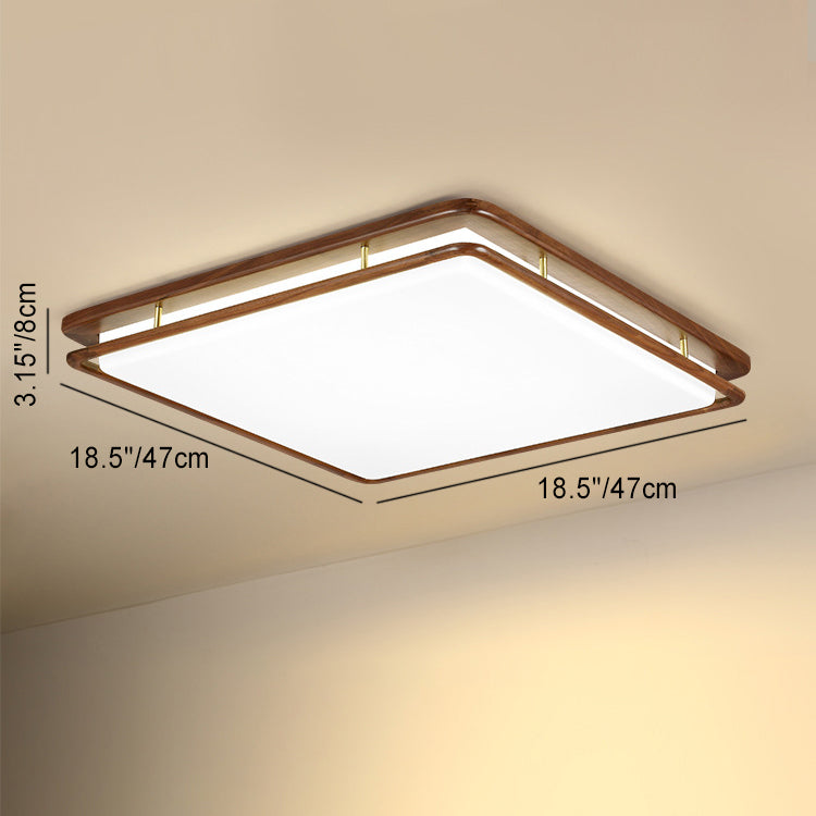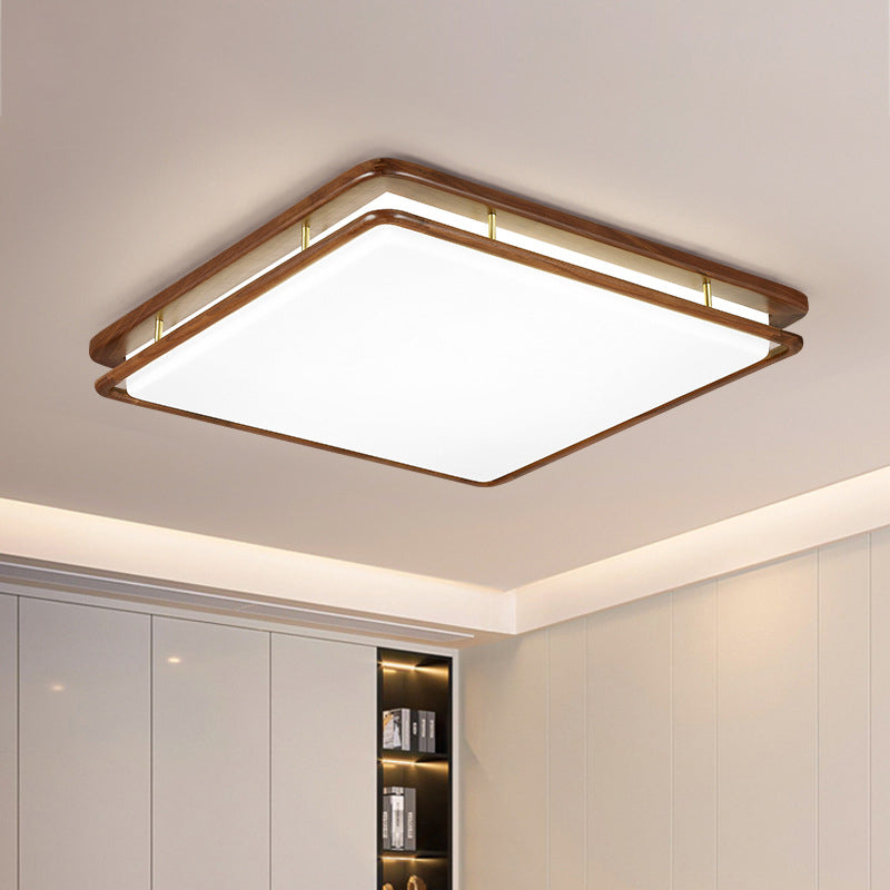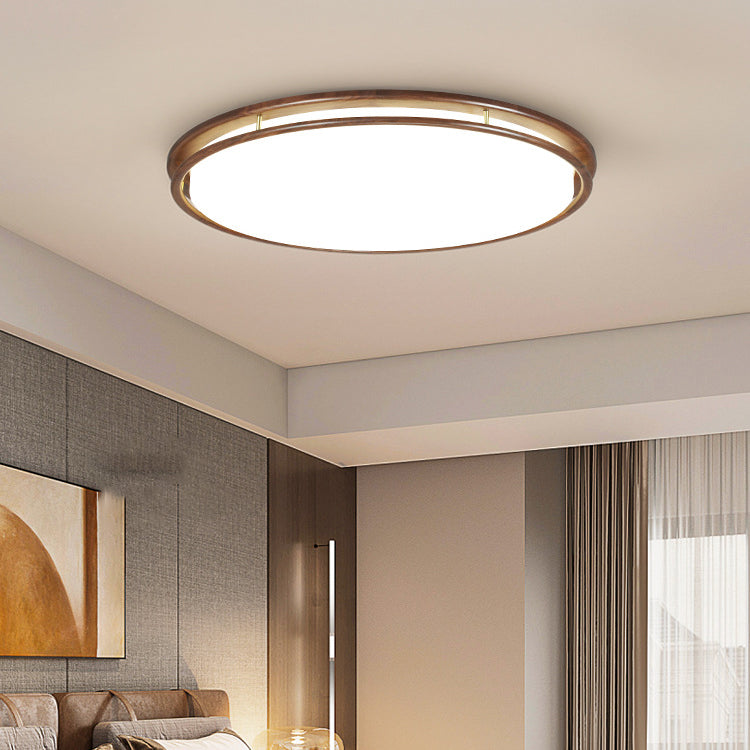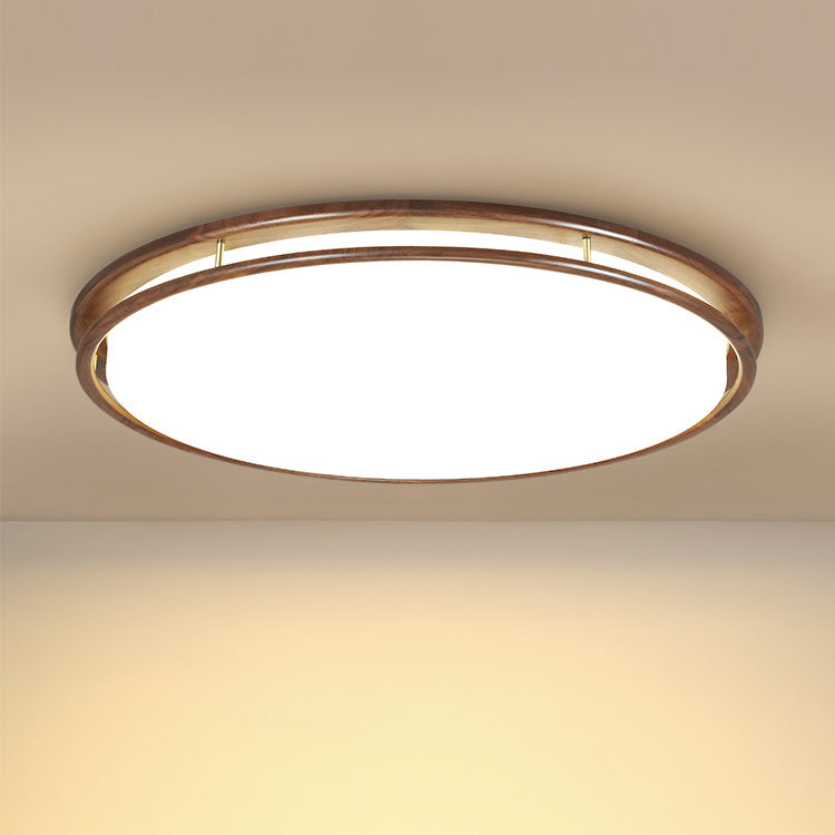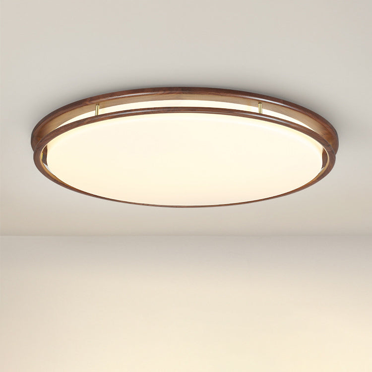 Modern Minimalist Geometric Round Walnut Wood Acrylic LED Flush Mount Ceiling Light For Living Room