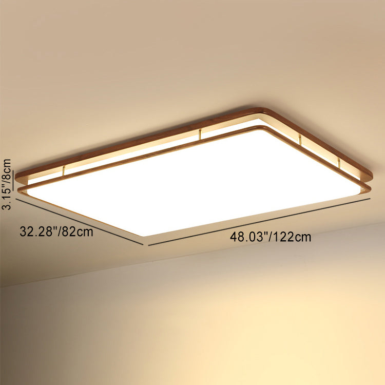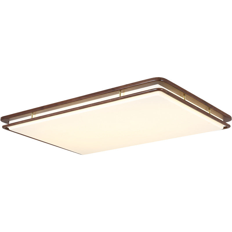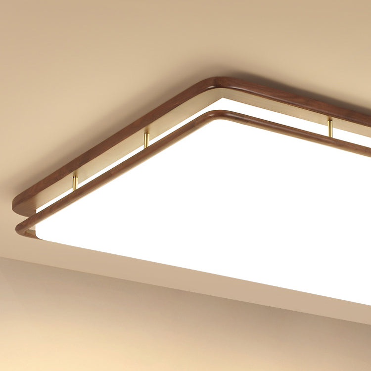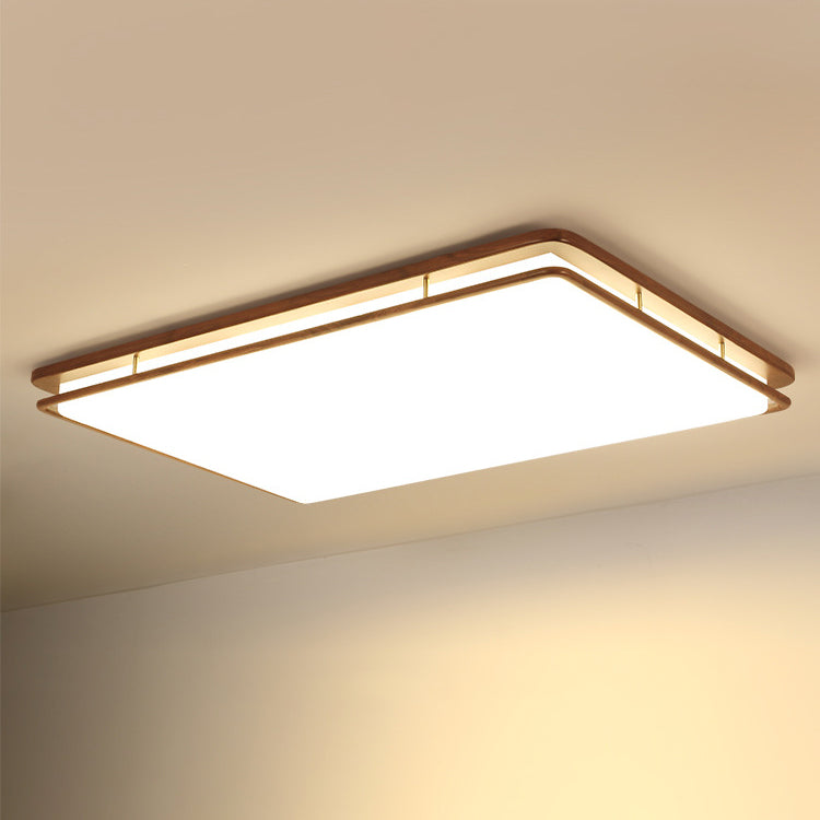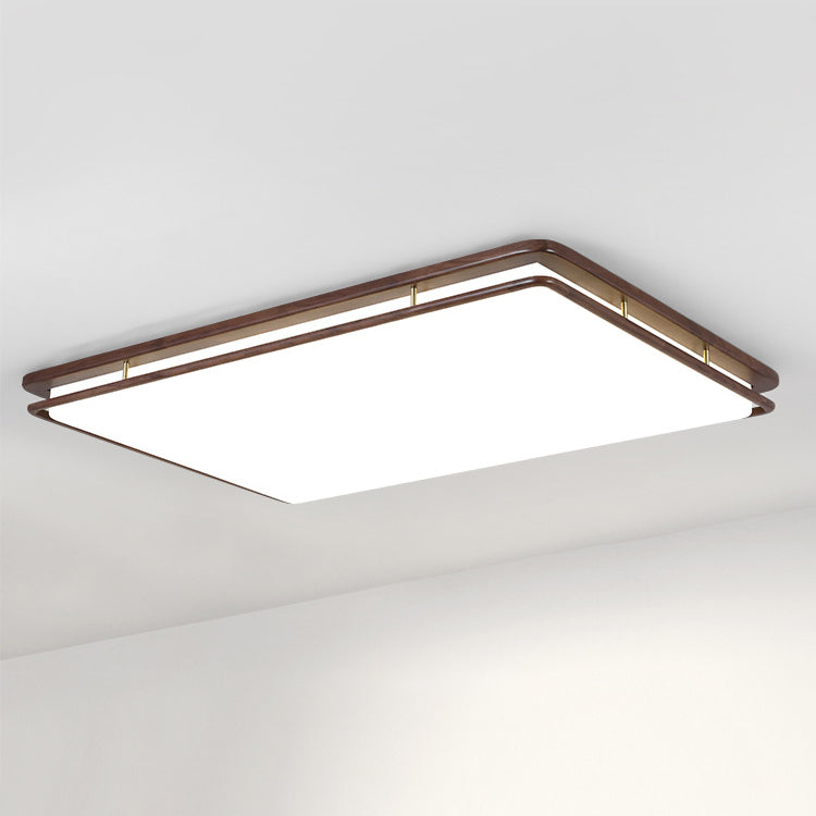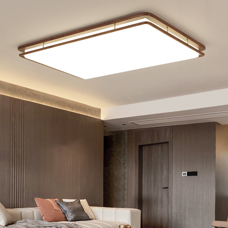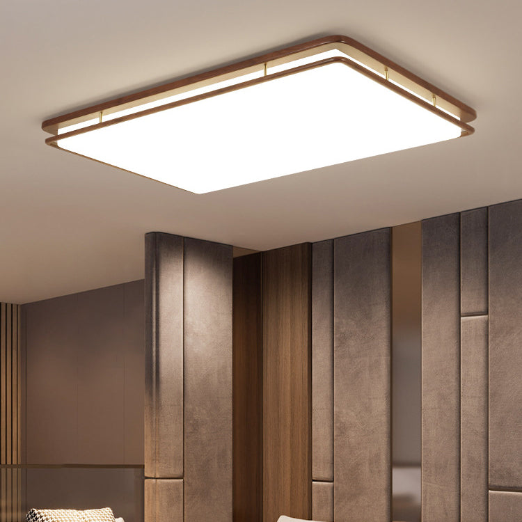 Modern Minimalist Geometric Round Walnut Wood Acrylic LED Flush Mount Ceiling Light For Living Room