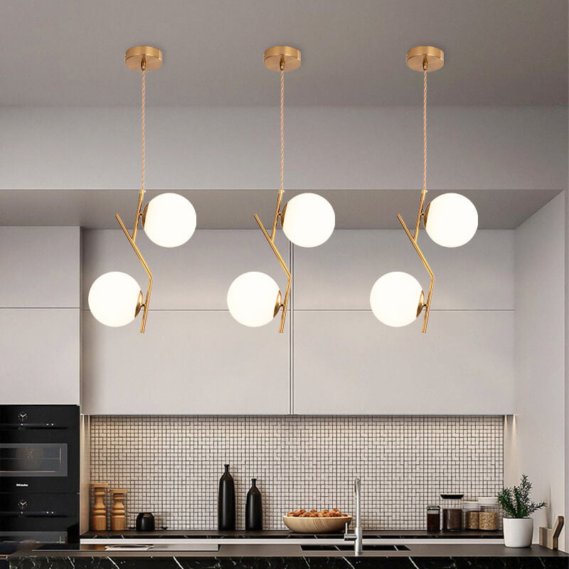 Modern Minimalist Glass 2-Light Island Light Chandelier