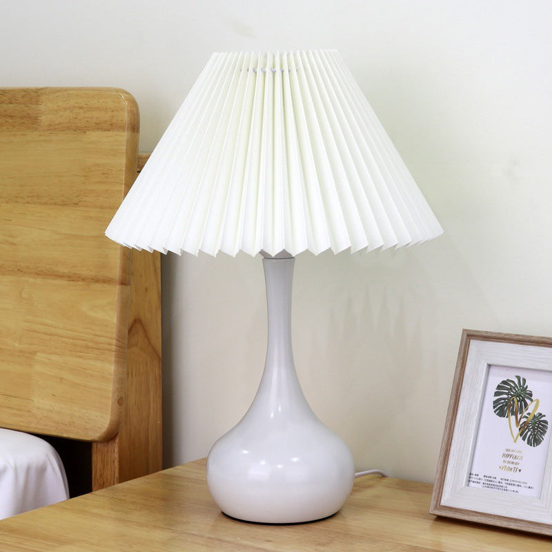 Modern Minimalist Gourd Folding Lampshade Metal Fabric 1-Light Table Lamp For Bedroom