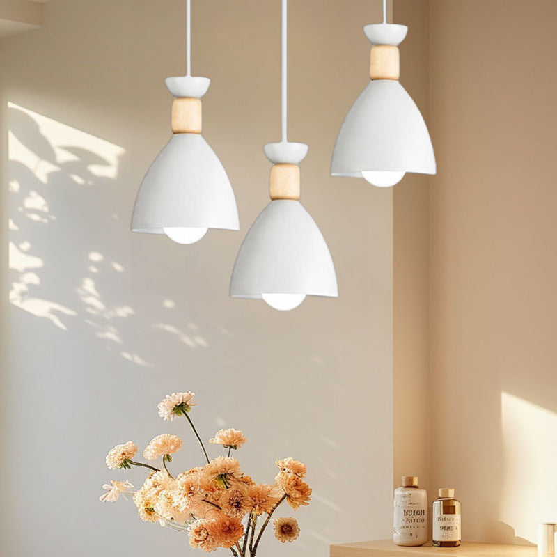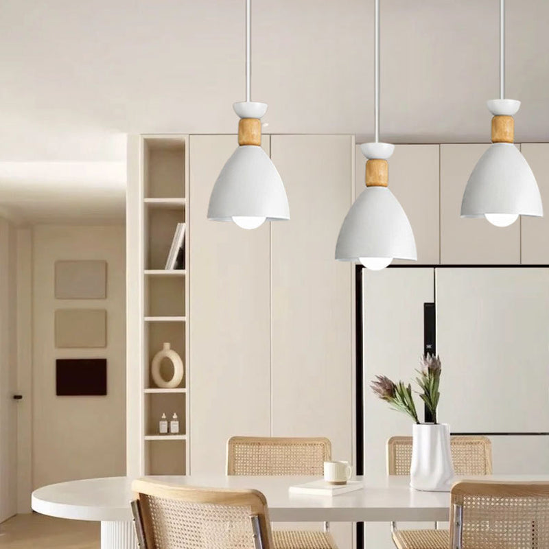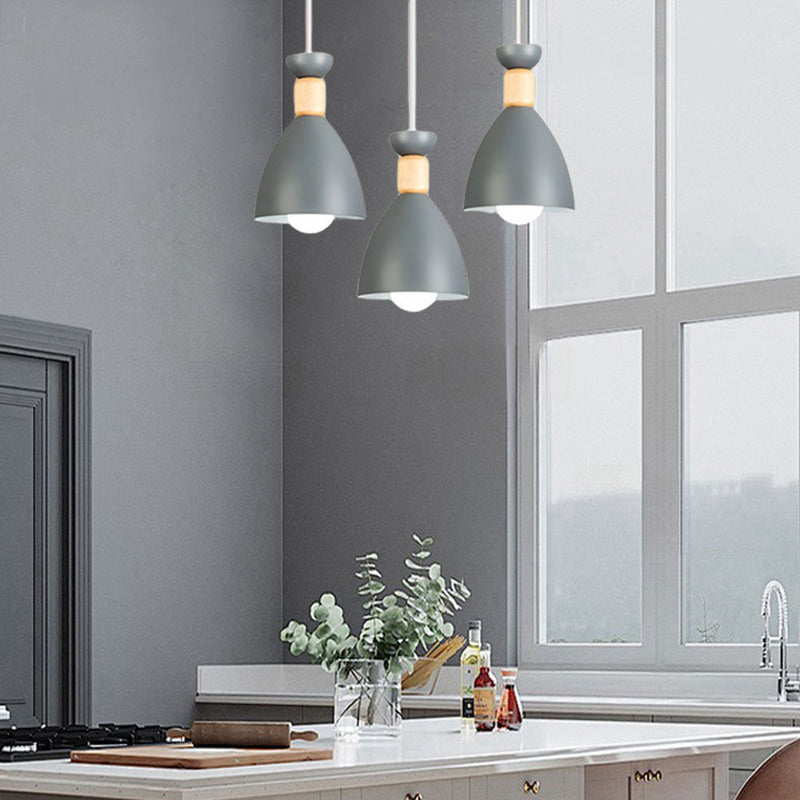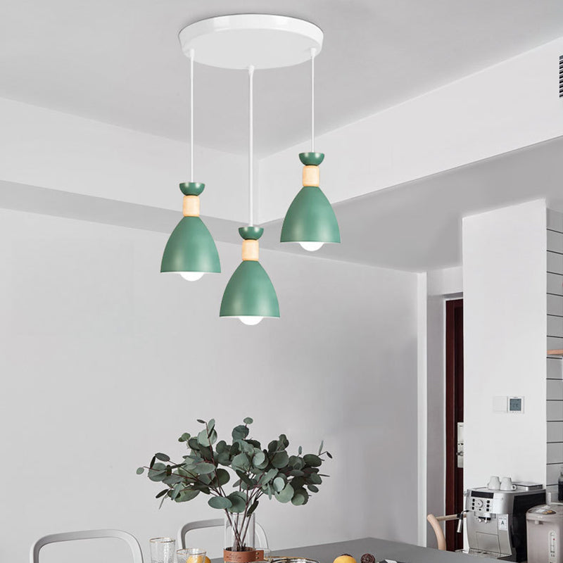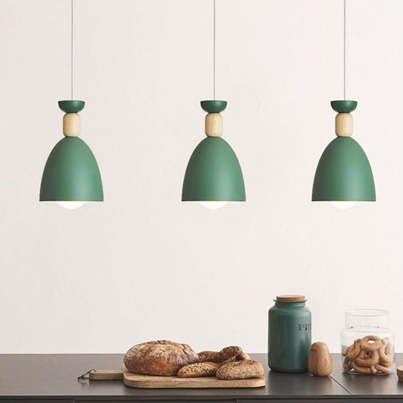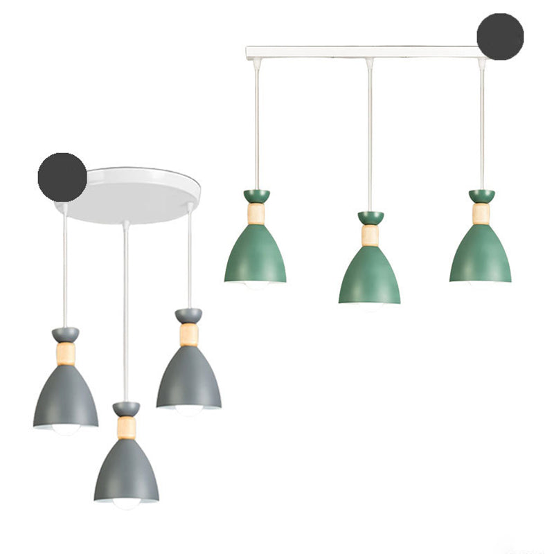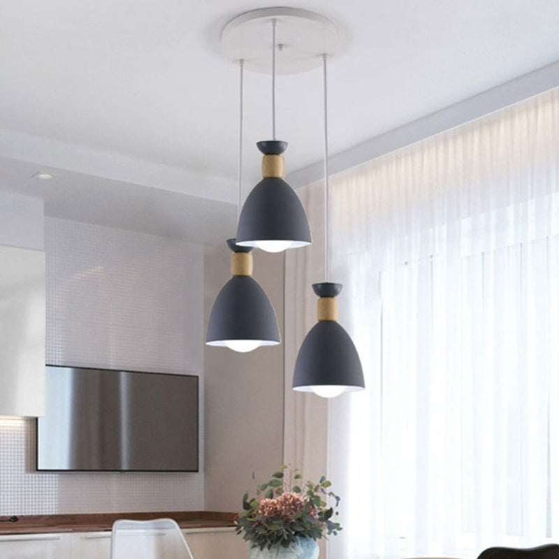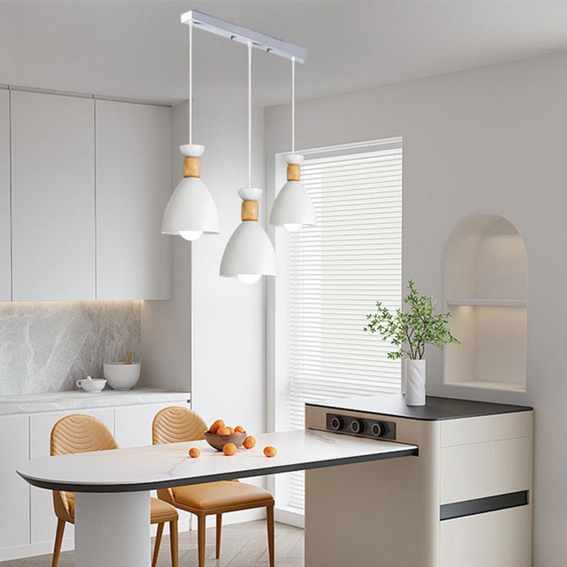 Modern Minimalist Half Oval Iron Wood 3-Light Chandelier Island Light For Dining Room