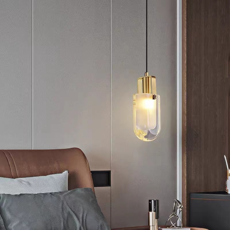 Modern Minimalist Half Round Copper Crystal LED Pendant Light For Bedroom