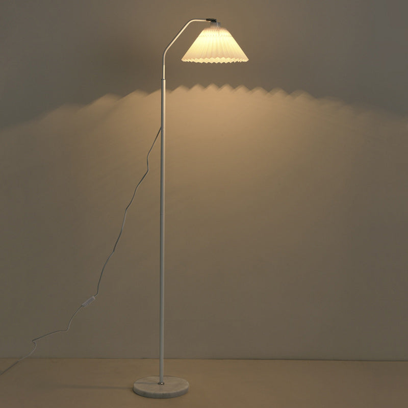 Modern Minimalist Iron & Fabric Pleated Cylinder 1-Light Standing Floor Lamp For Living Room