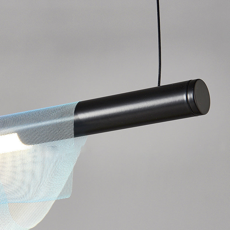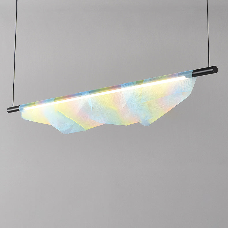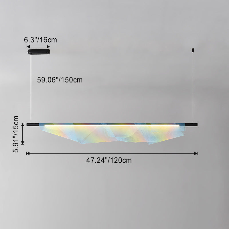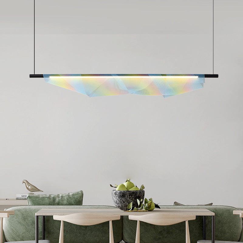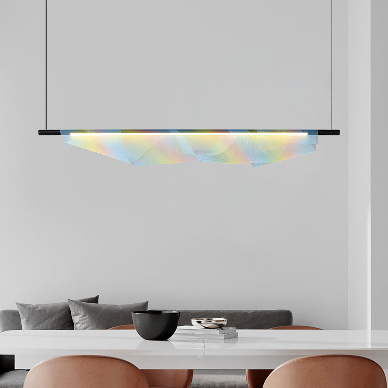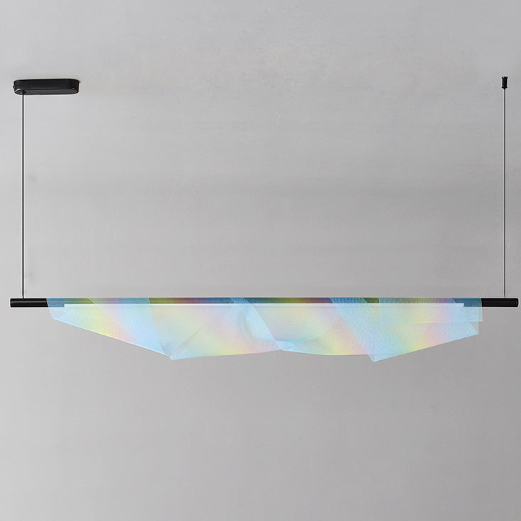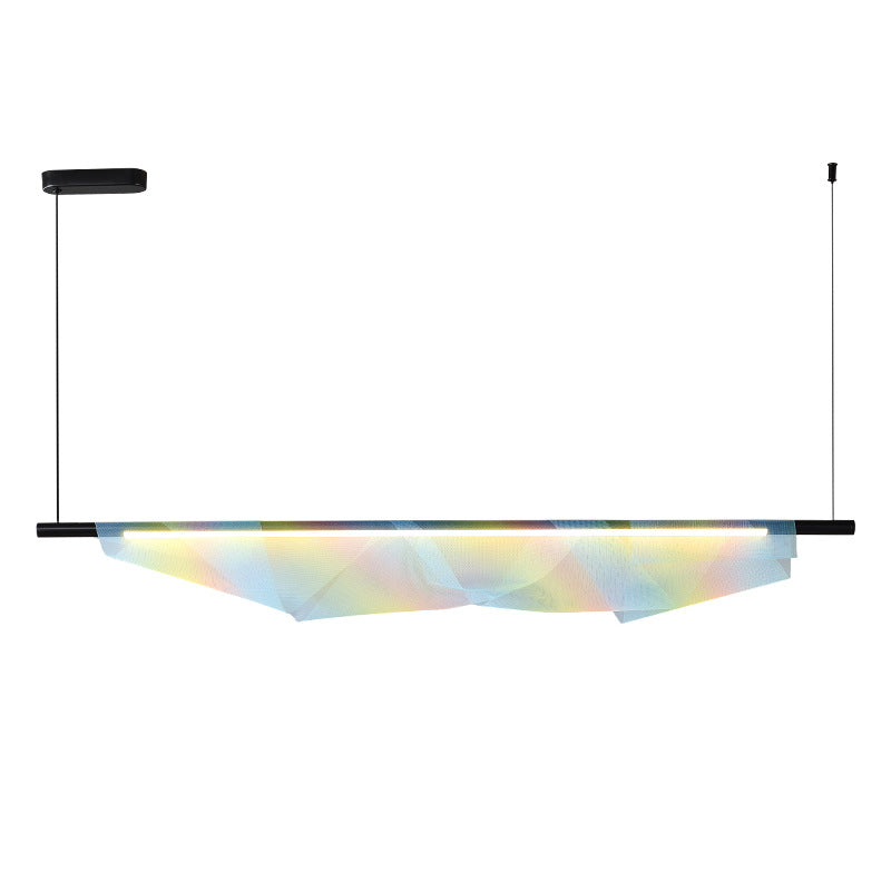 Modern Minimalist Iron Long Strip Rainbow Mesh Decor LED Island Light Pendant Light For Dining Room