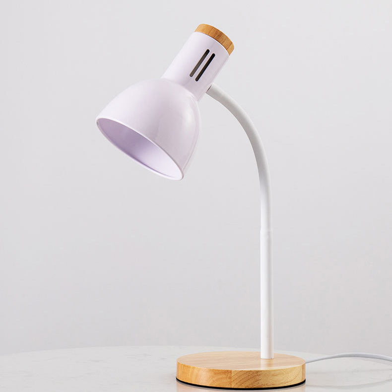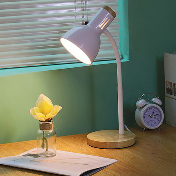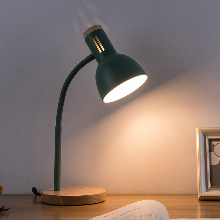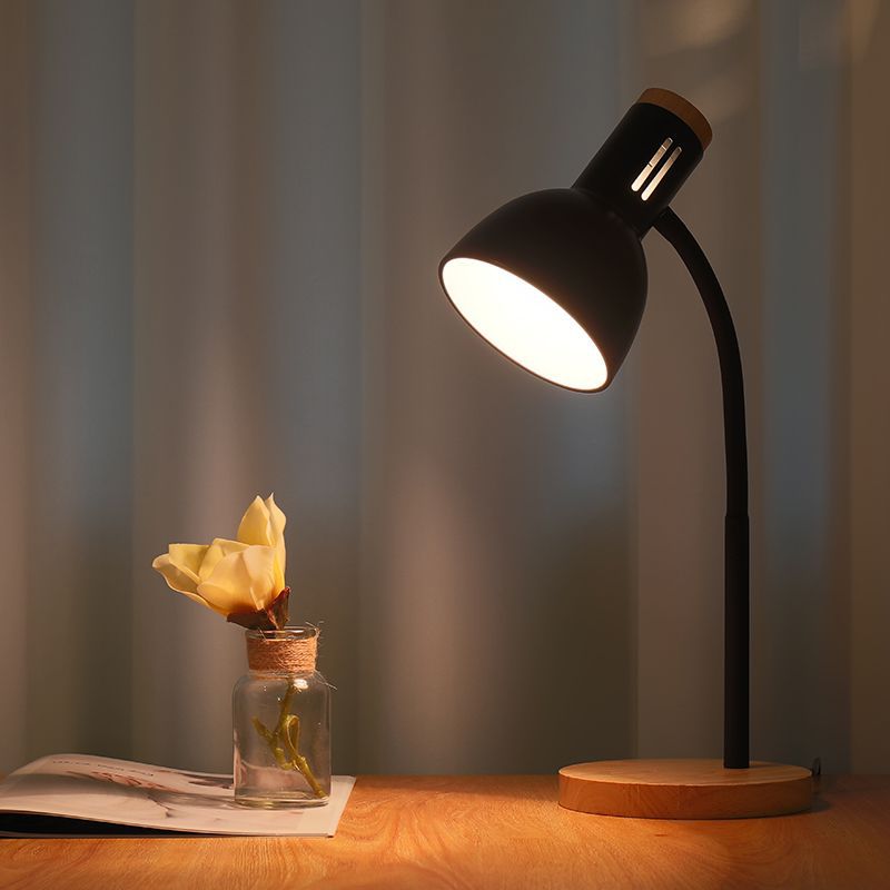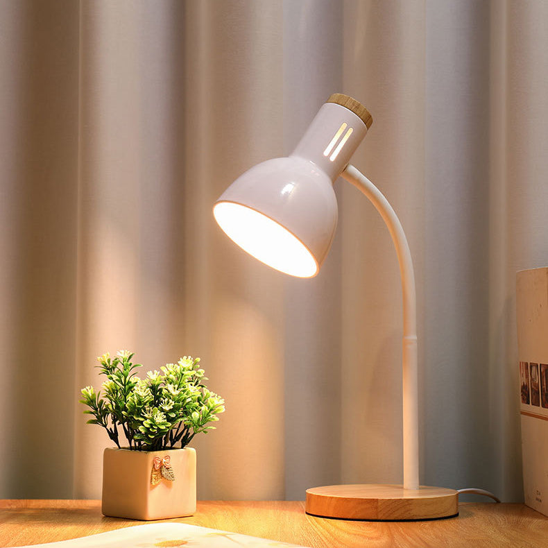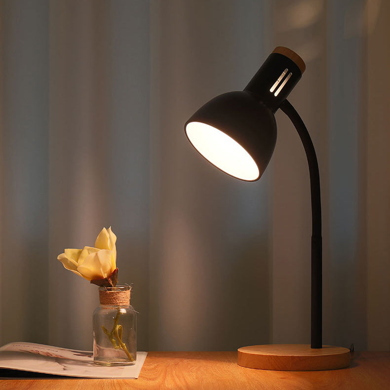 Modern Minimalist Iron Wooden Base Hose Foldable Adjustable Arm 1-Light Table Lamp For Bedroom