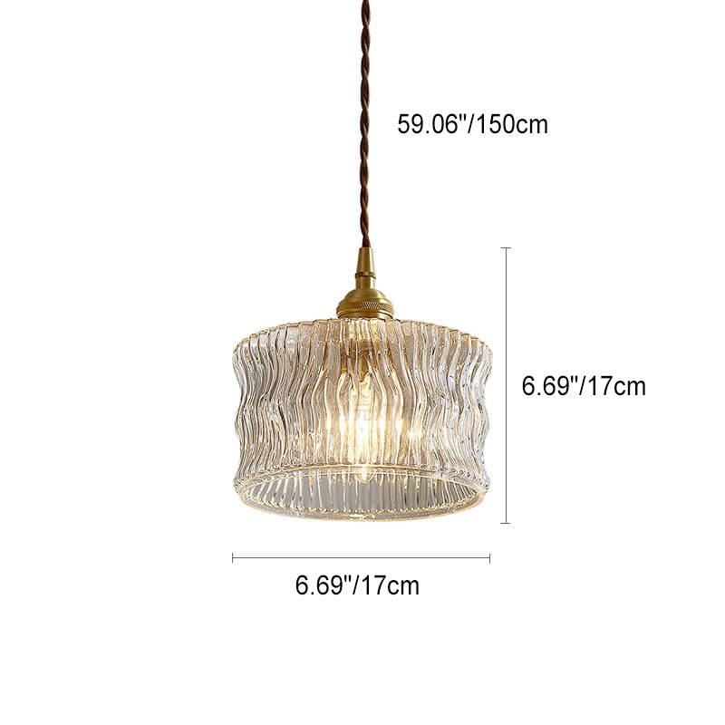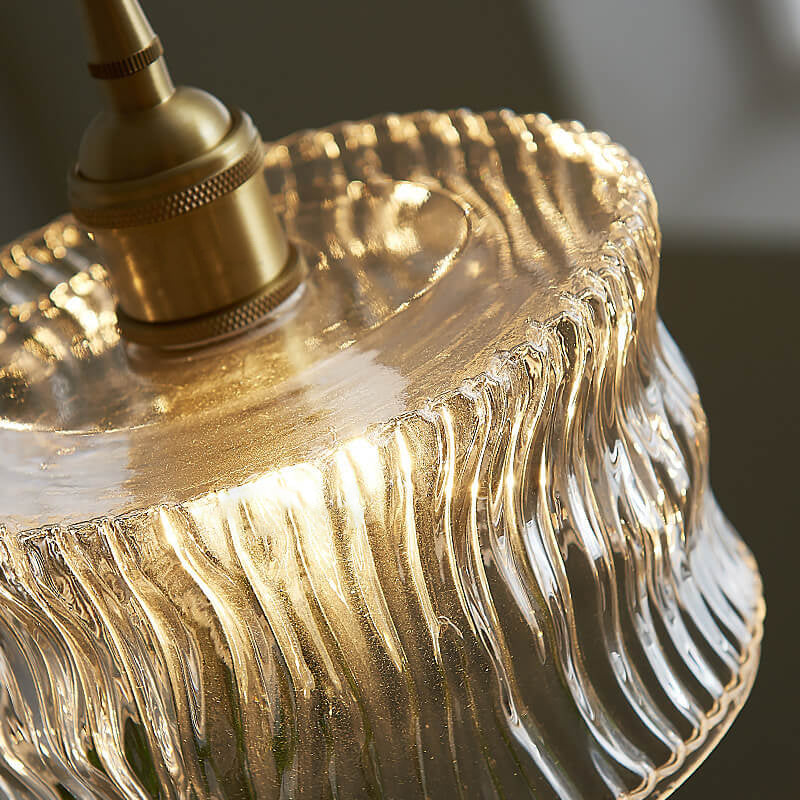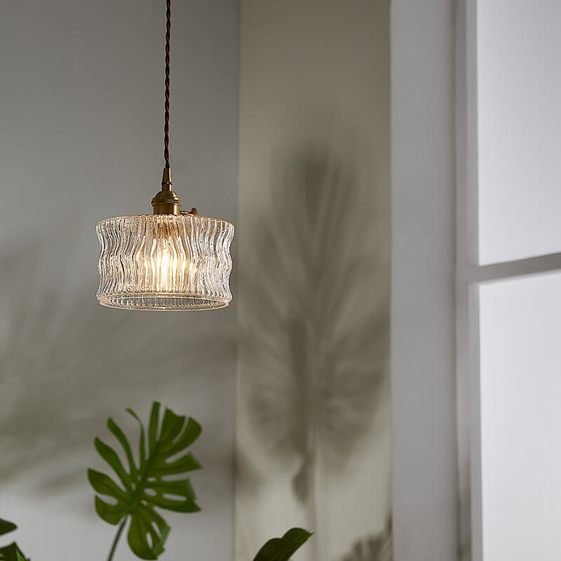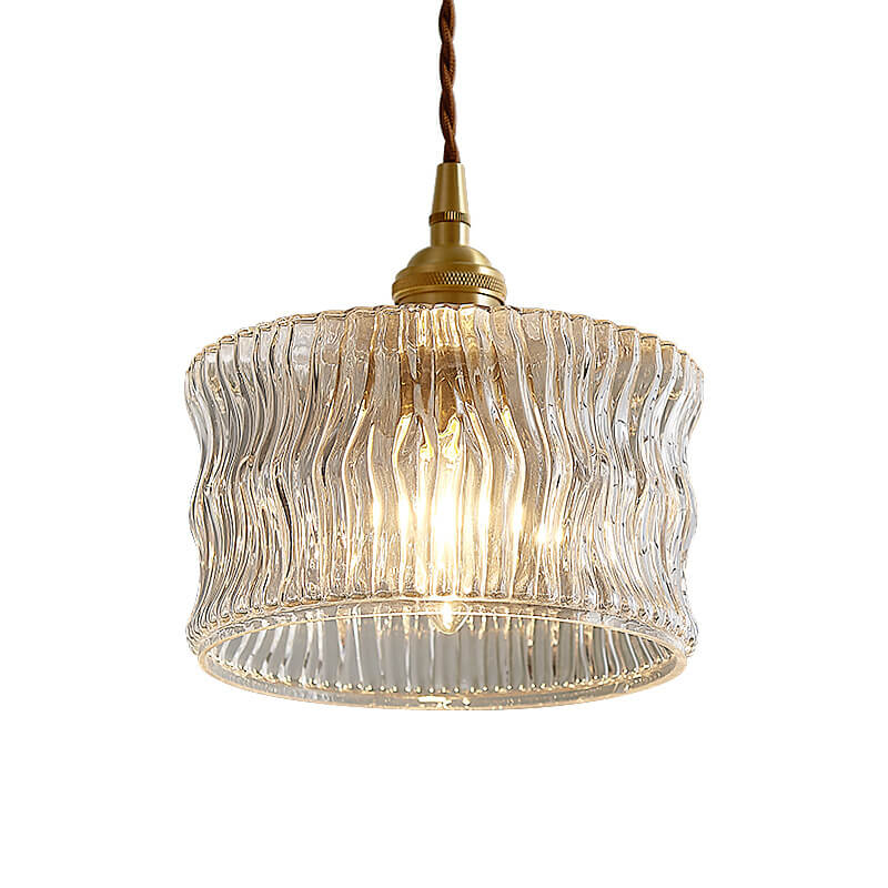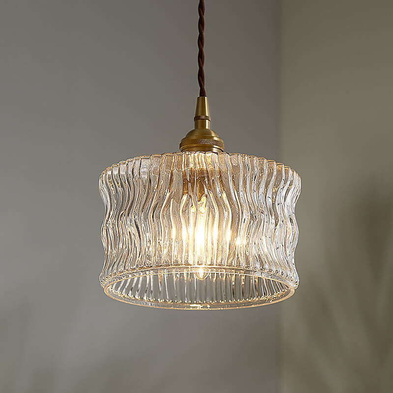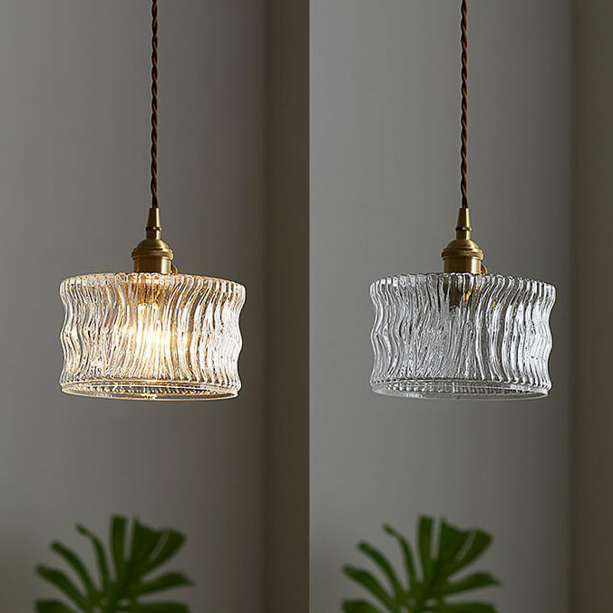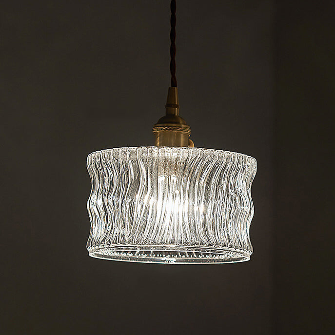 Modern Minimalist Lantern Carved Glass Copper 1-Light Pendant Light