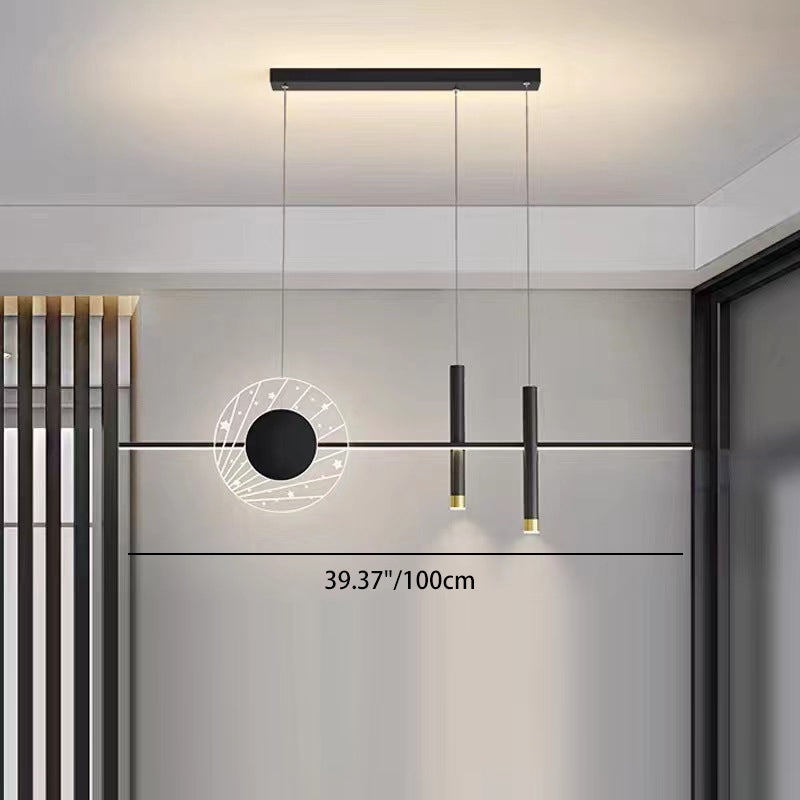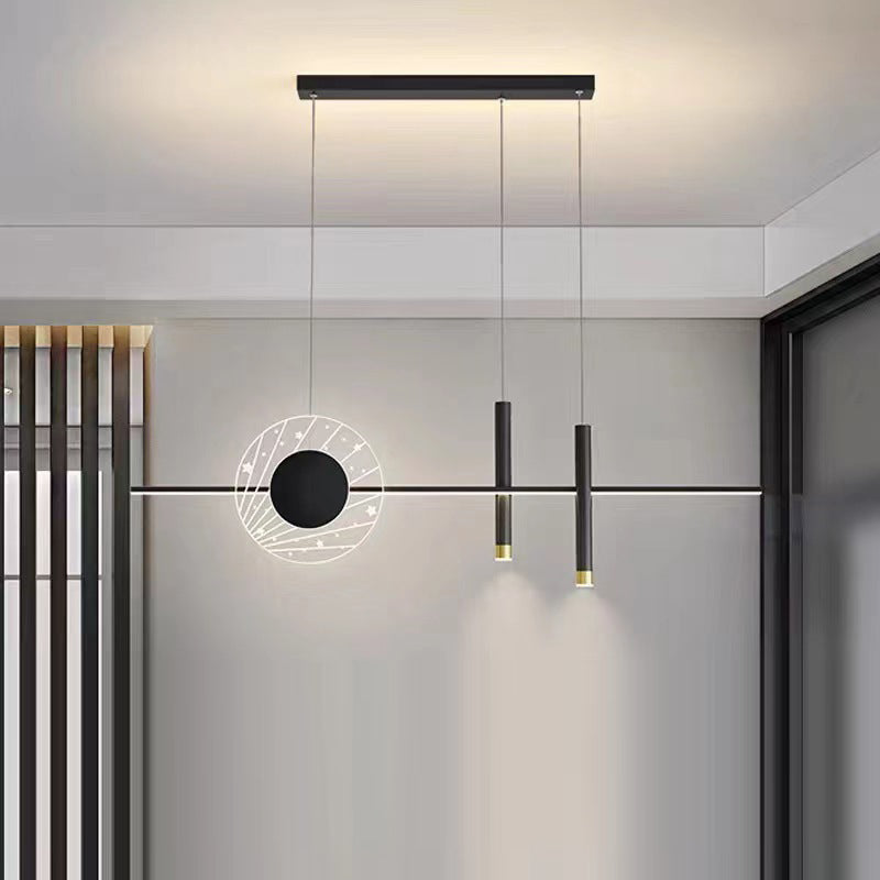 Modern Minimalist Long Cylinder Round Acrylic Iron LED Chandelier For Living Room