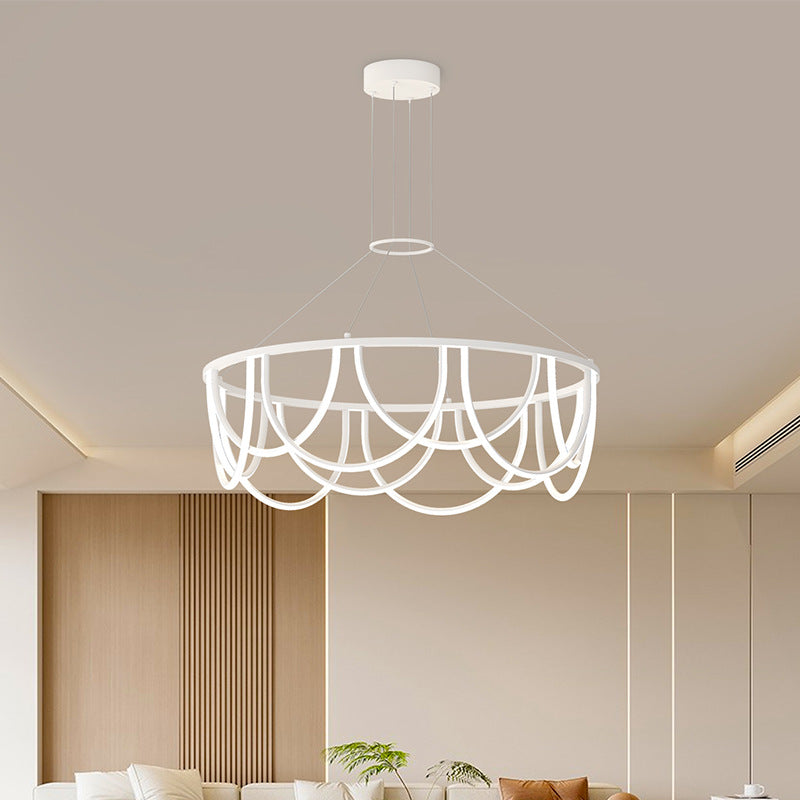 Modern Minimalist Long Line Round Iron Silicone LED Chandelier For Living Room