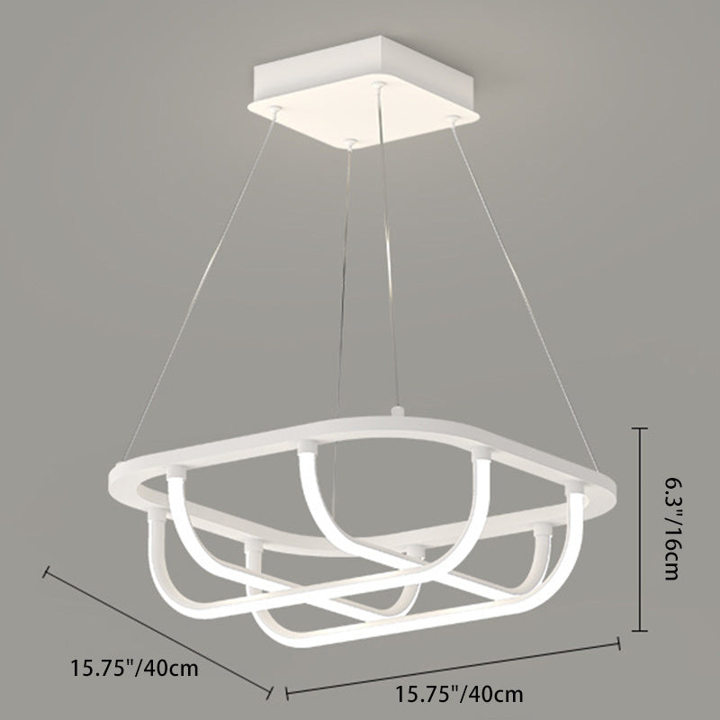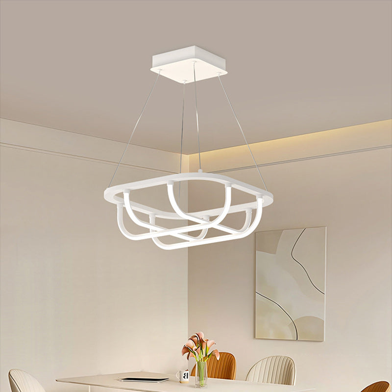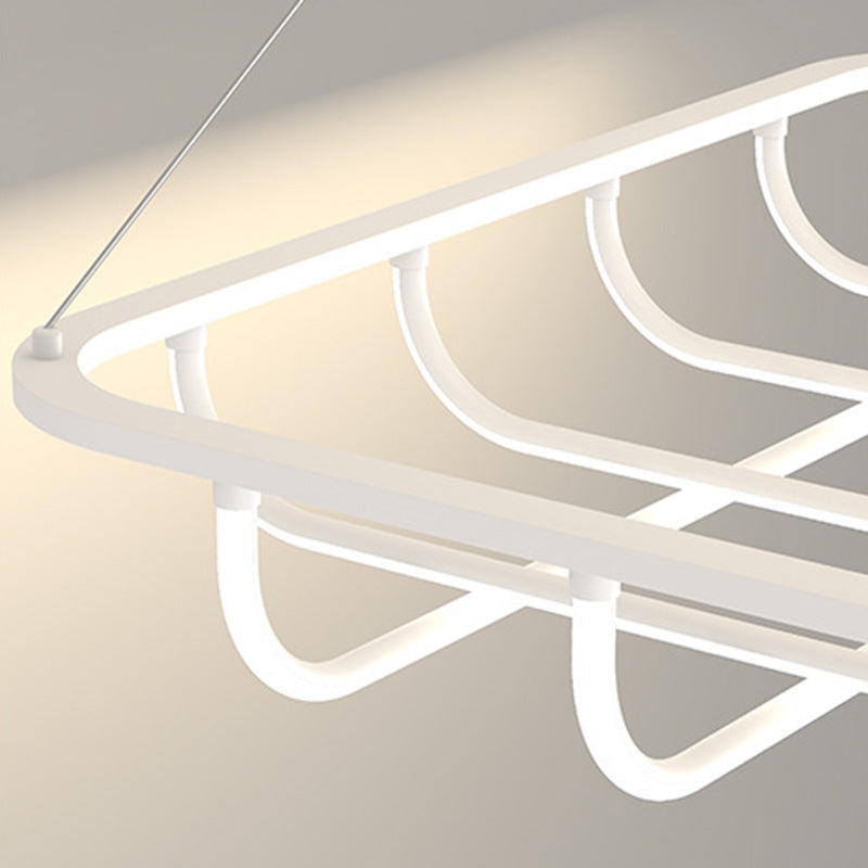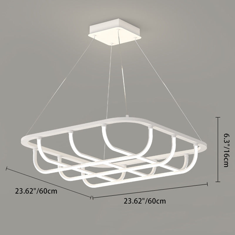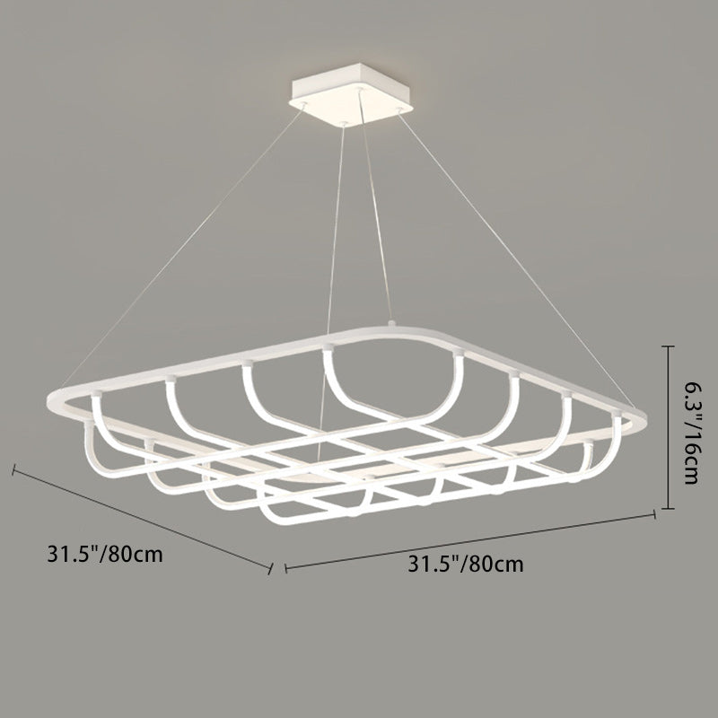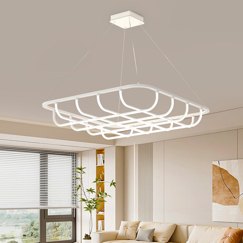 Modern Minimalist Long Line Square Basket Shape Iron Aluminum Silicone LED Chandelier For Living Room