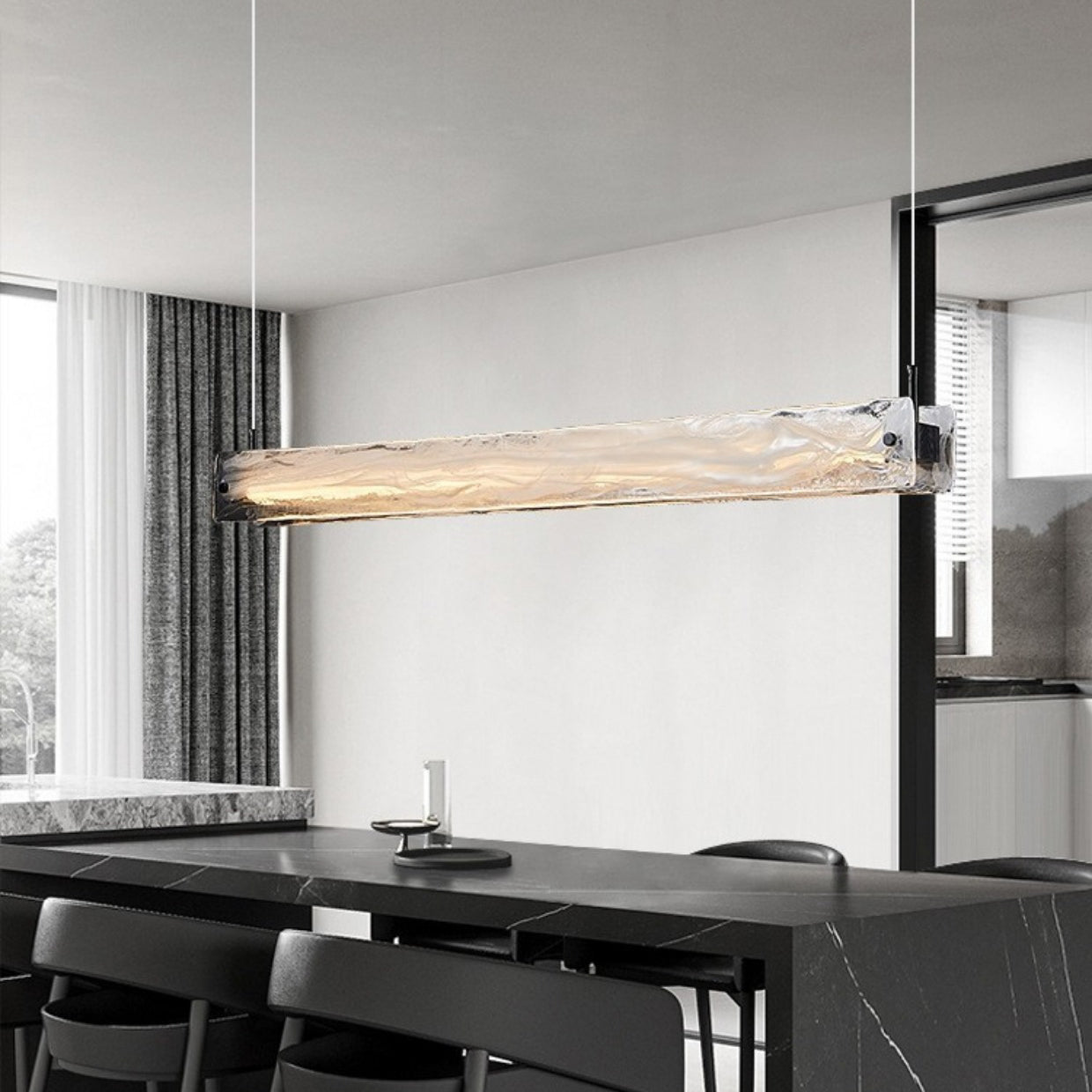 Modern Minimalist Long Strip Iron Aluminum Glass LED Island Light Pendant Light For Study Room