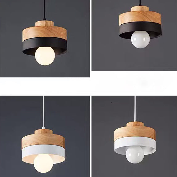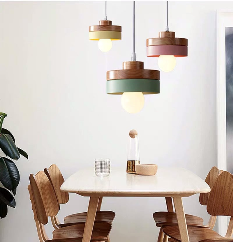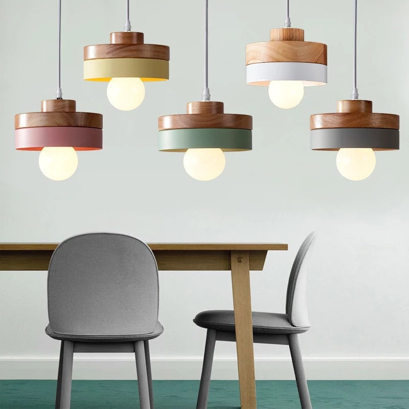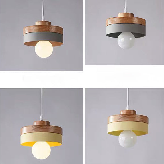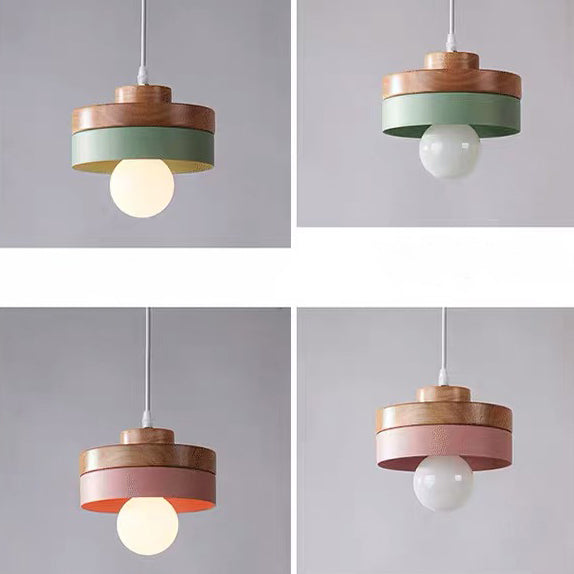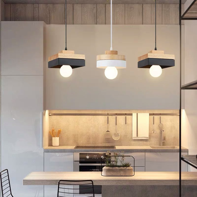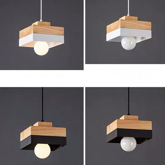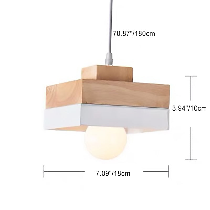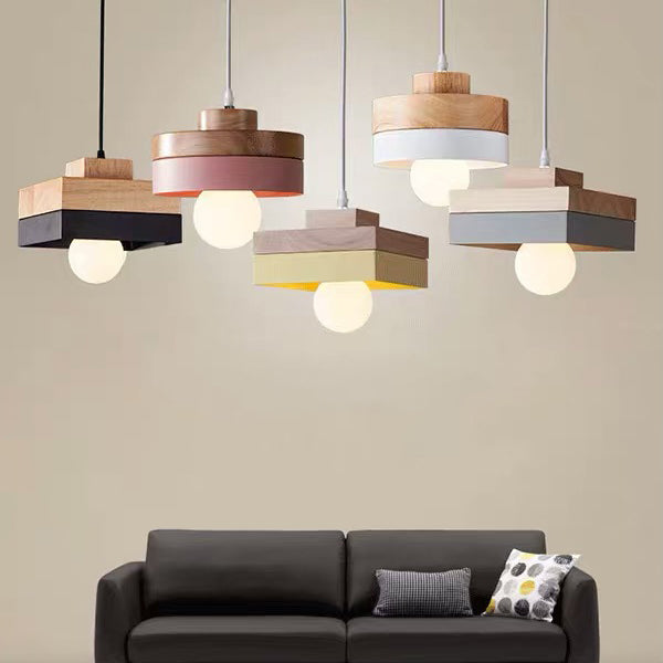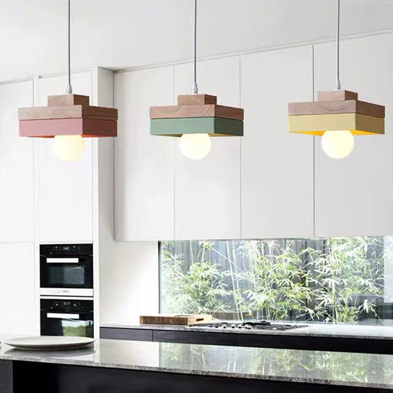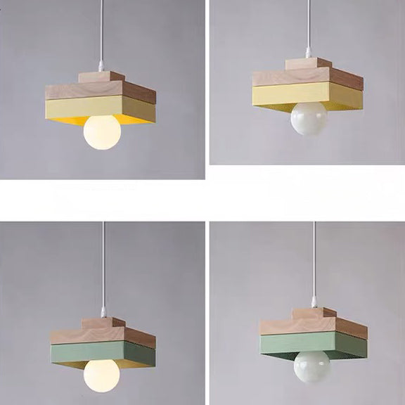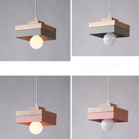 Modern Minimalist Macaron Square Iron Wood 1-Light Pendant Light For Living Room