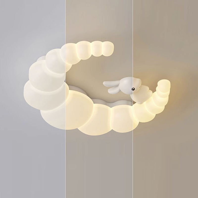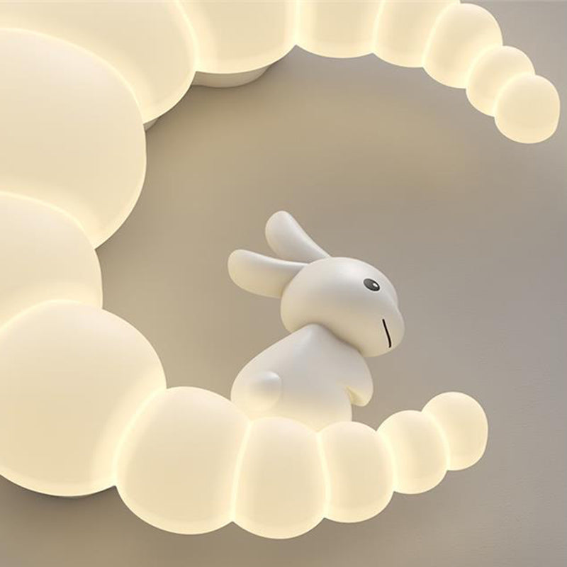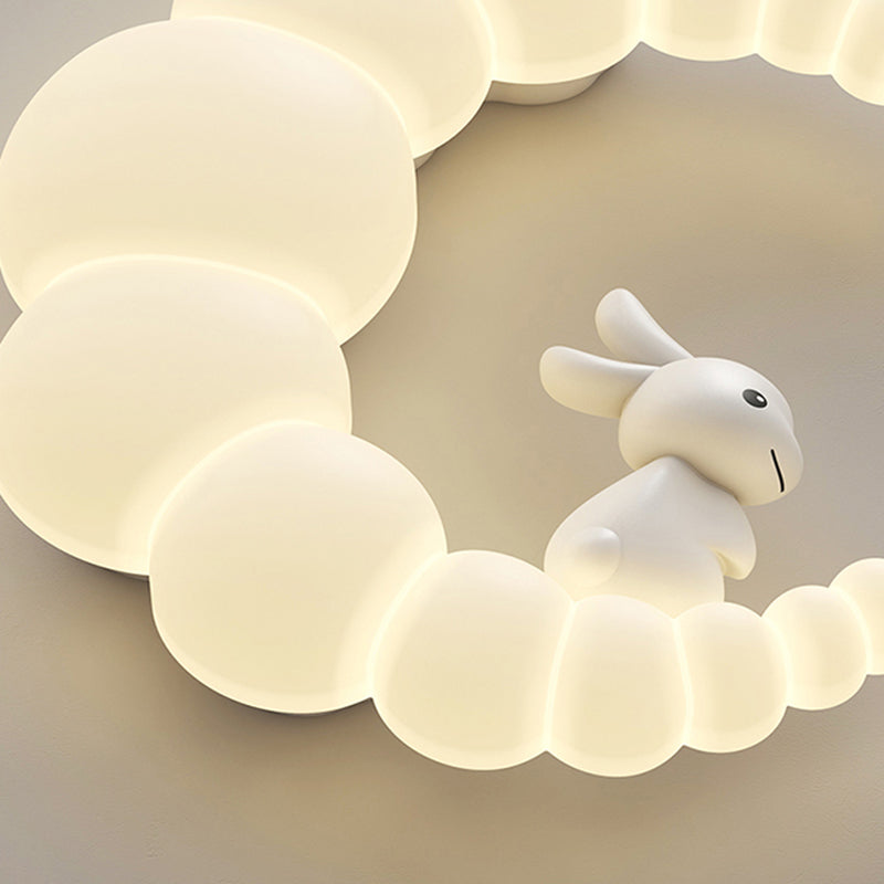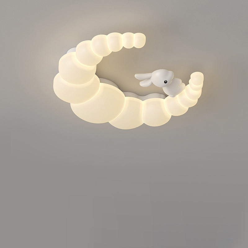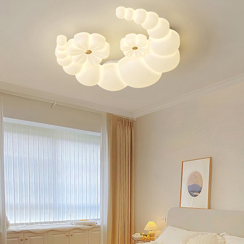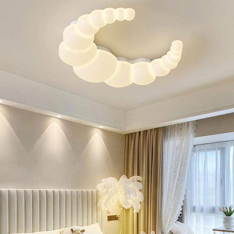 Modern Minimalist Moon Flower Rabbit Iron PE Shade LED Flush Mount Ceiling Light For Bedroom