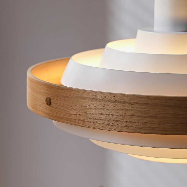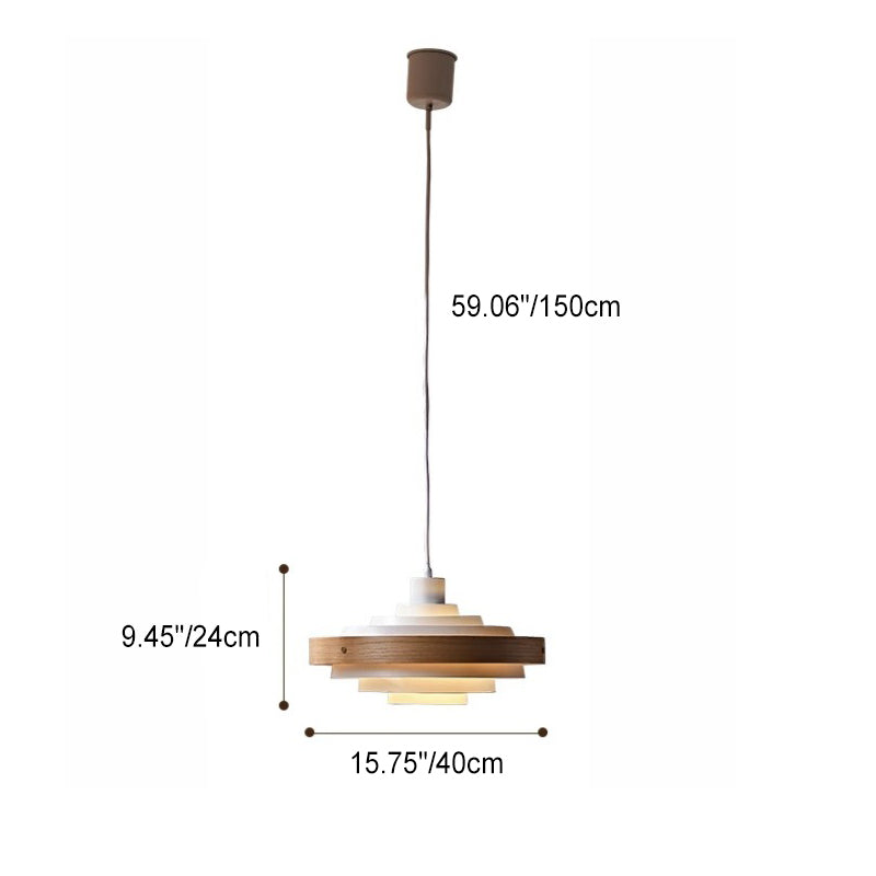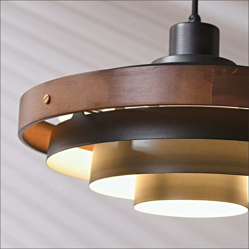 Modern Minimalist Multiple Layers Round Hardware Solid Wood 1-Light Pendant Light For Living Room