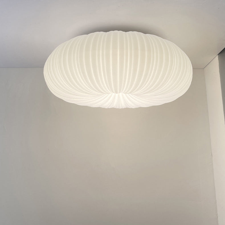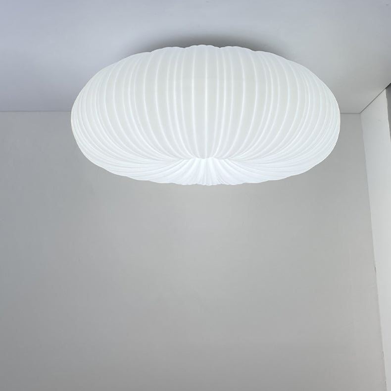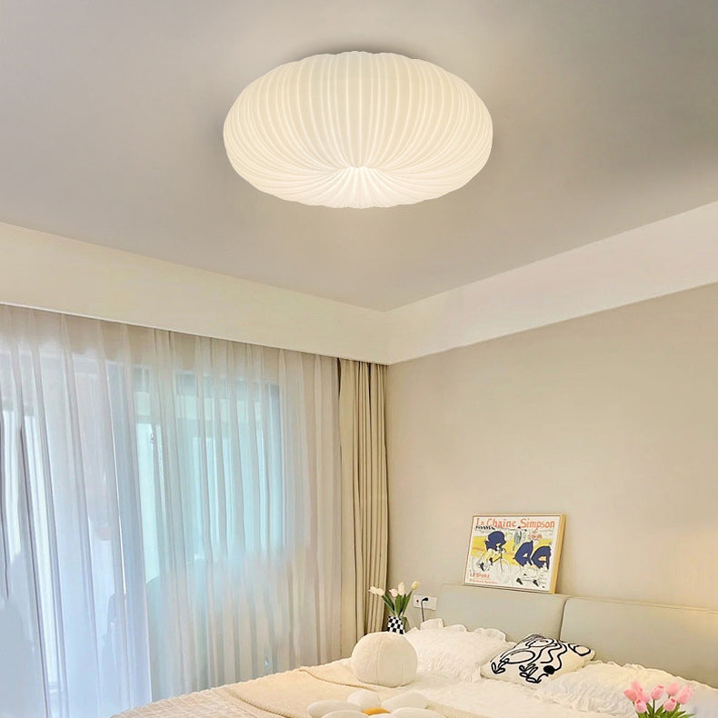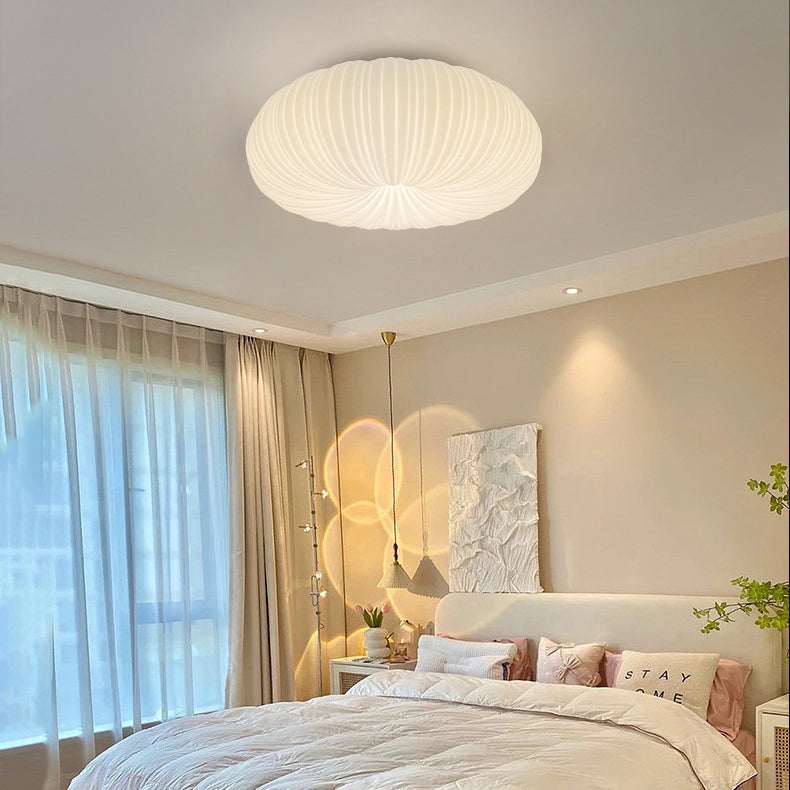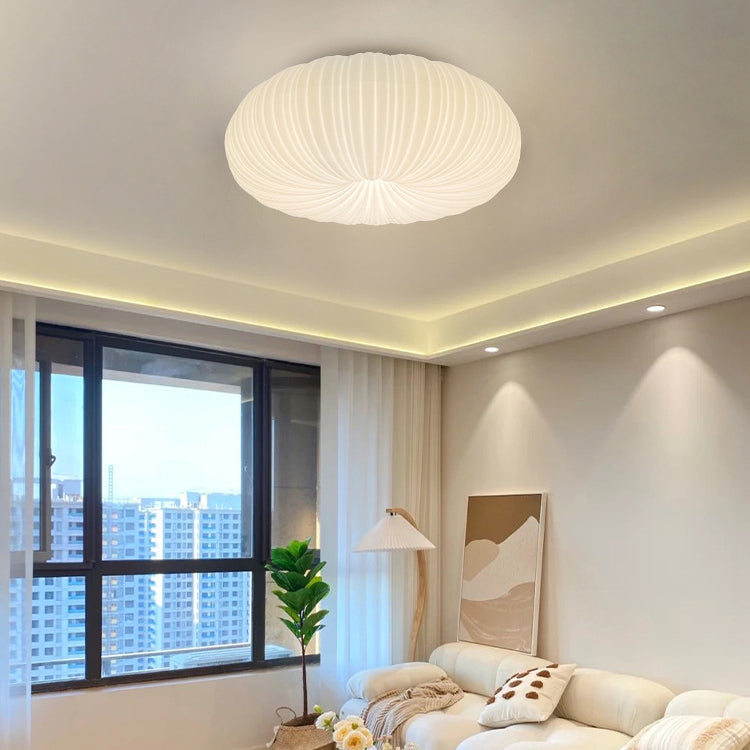 Modern Minimalist PE Pumpkin Shade Hardware LED Flush Mount Ceiling Light For Living Room