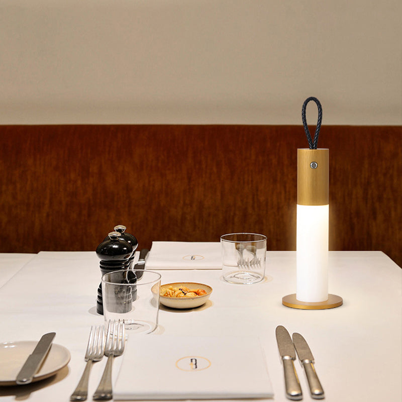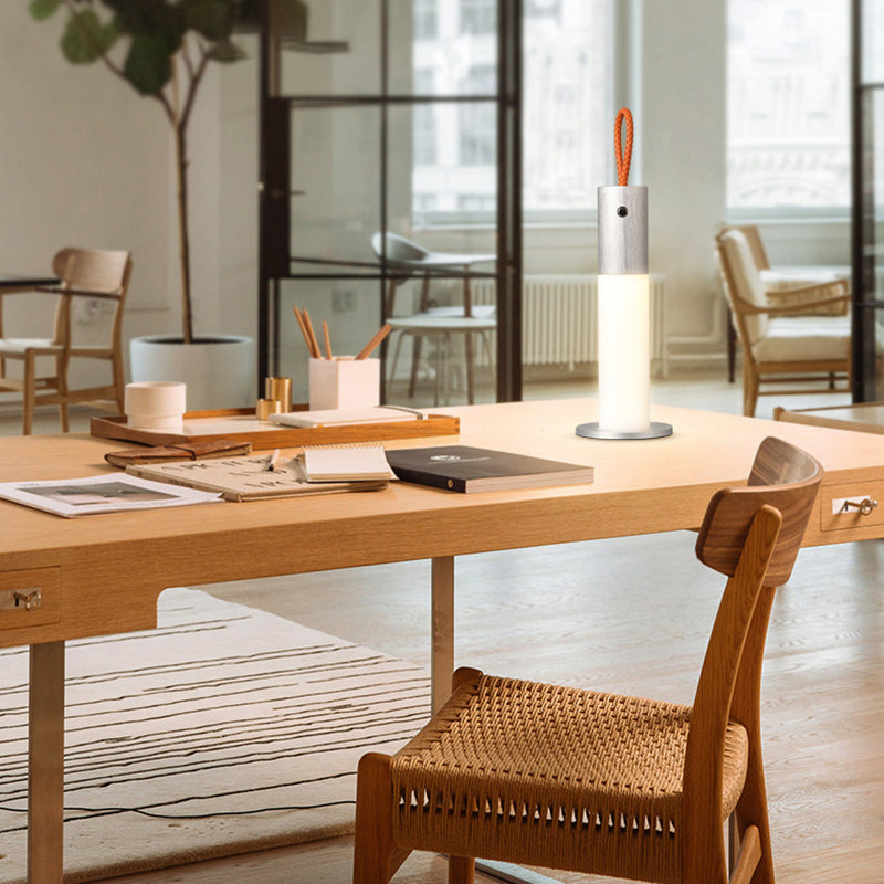 Modern Minimalist Portable Carrying Cord Cylinder Aluminum Acrylic LED Table Lamp For Bedroom
