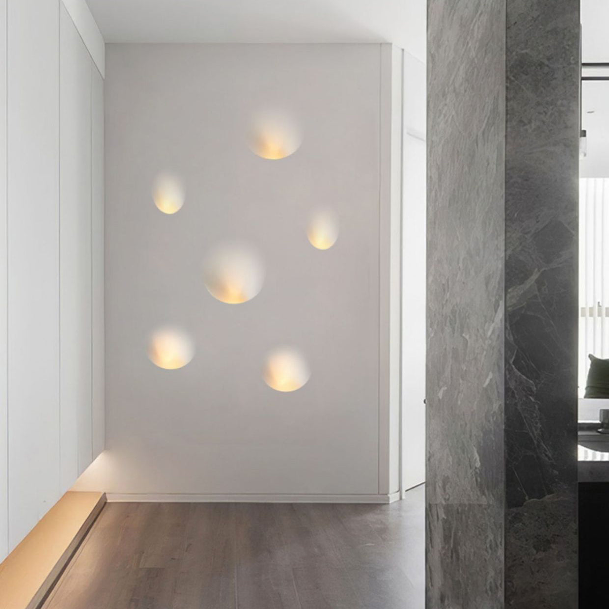 Modern Minimalist Recessed Plaster Round 1-Light Wall Sconce Lamp For Living Room