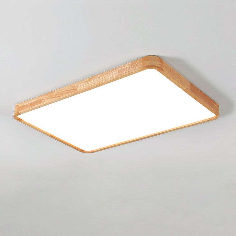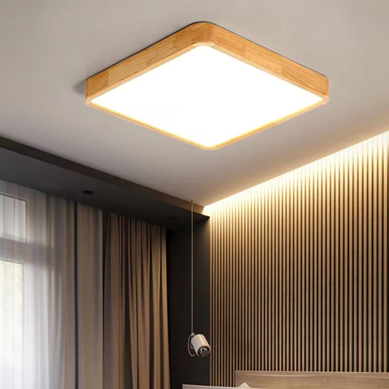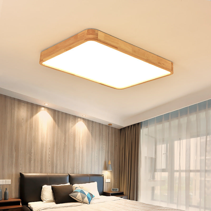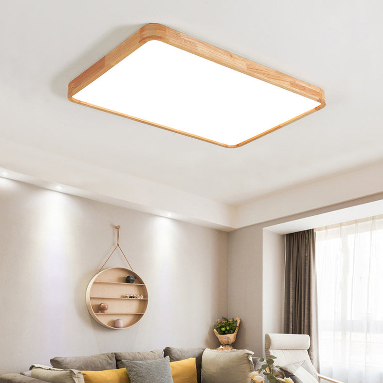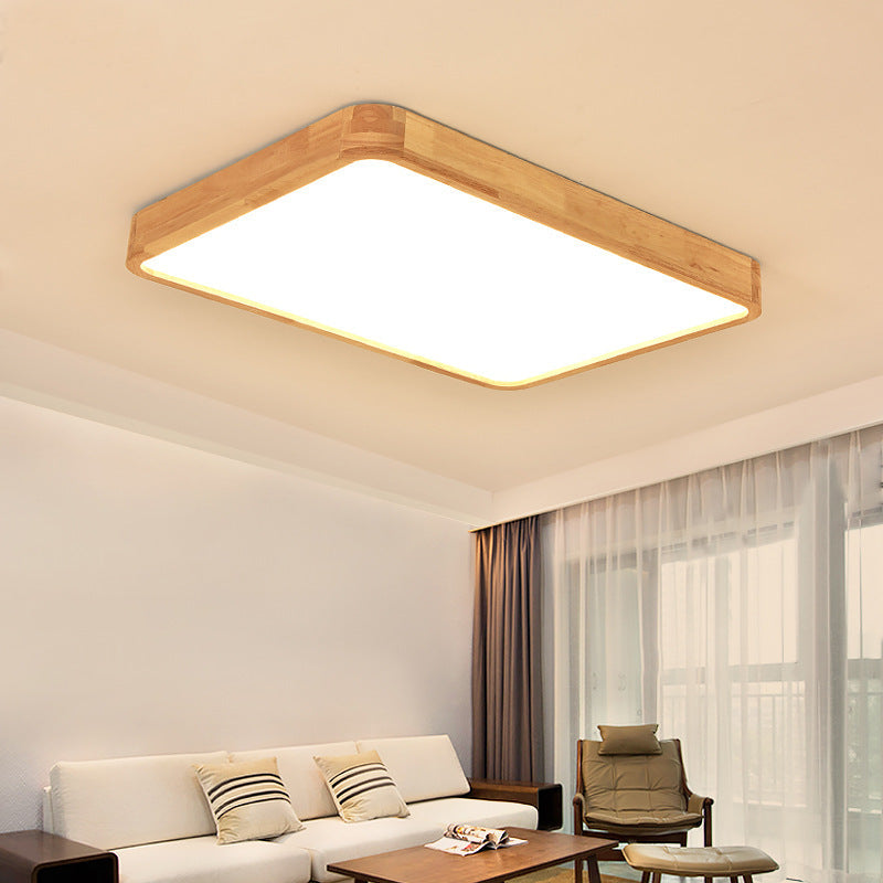 Modern Minimalist Rectangle Square Wood Acrylic LED Flush Mount Ceiling Light For Living Room
