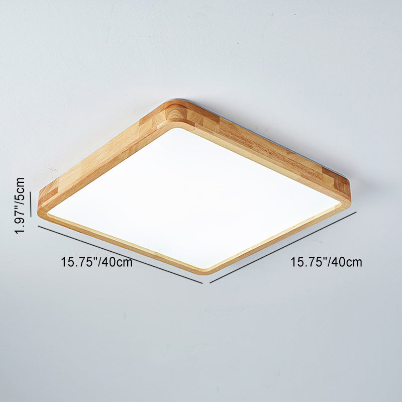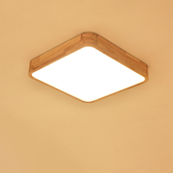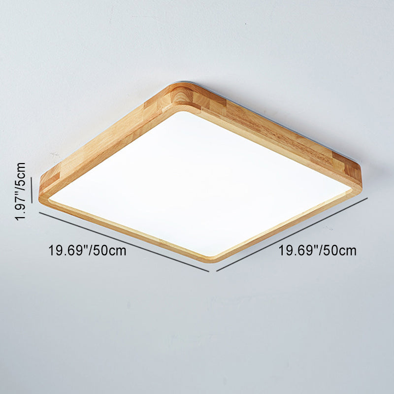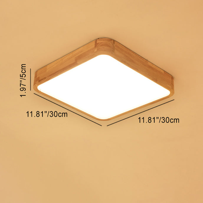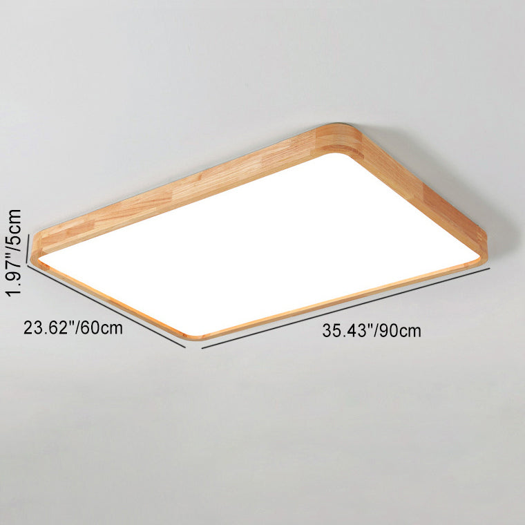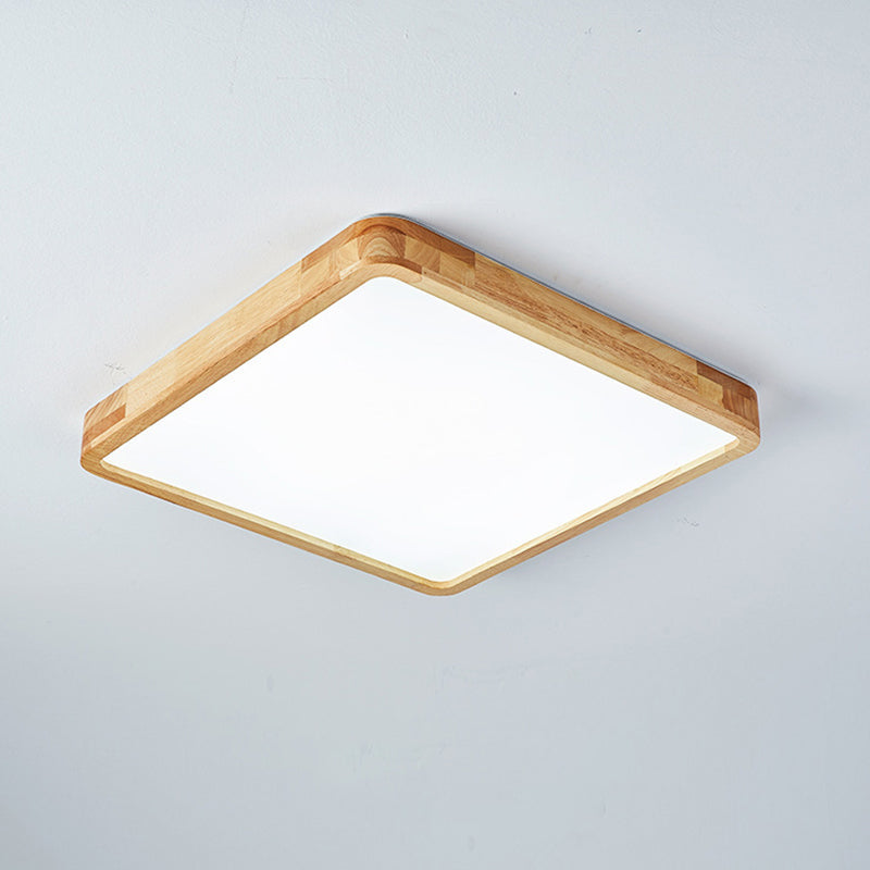 Modern Minimalist Rectangle Square Wood Acrylic LED Flush Mount Ceiling Light For Living Room