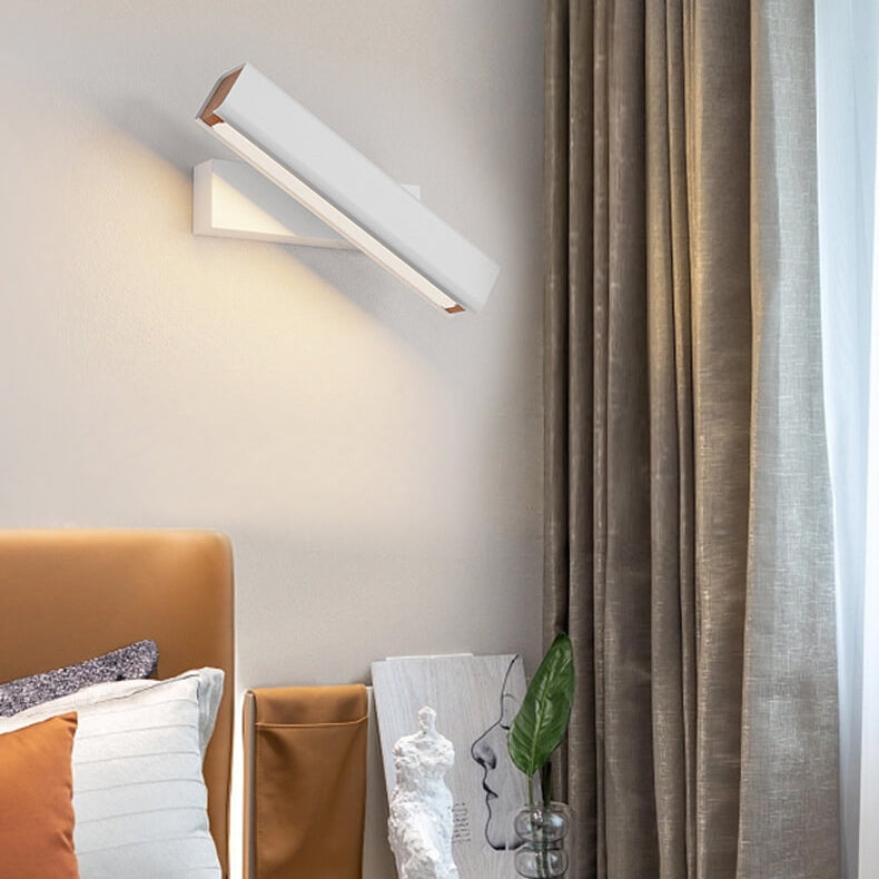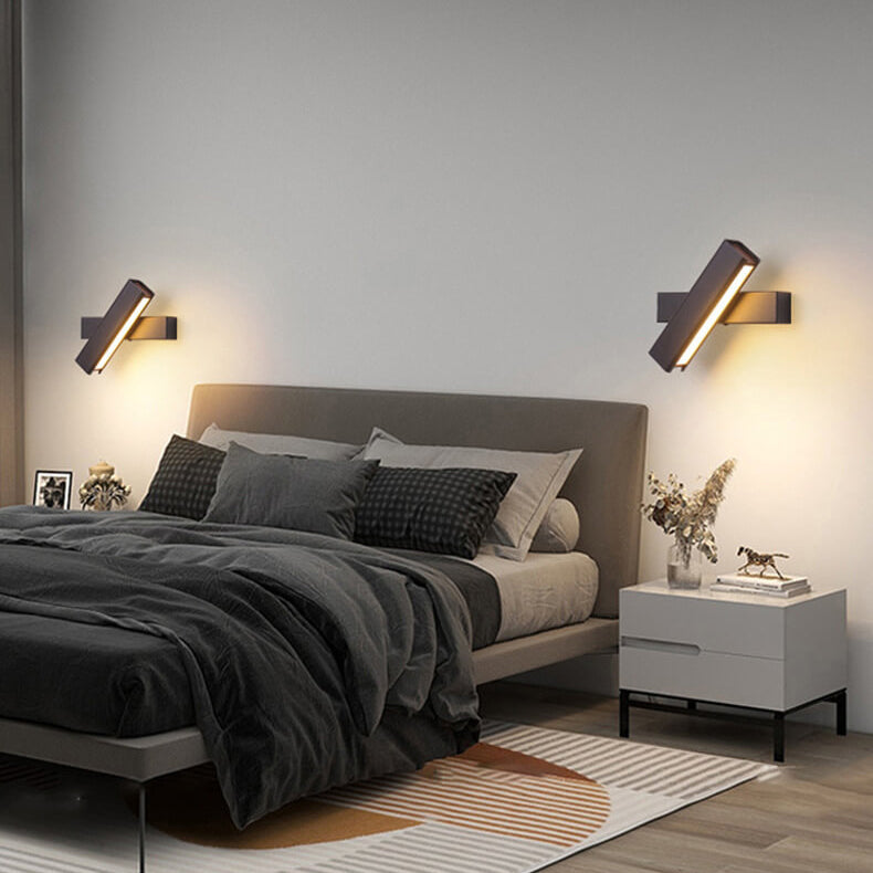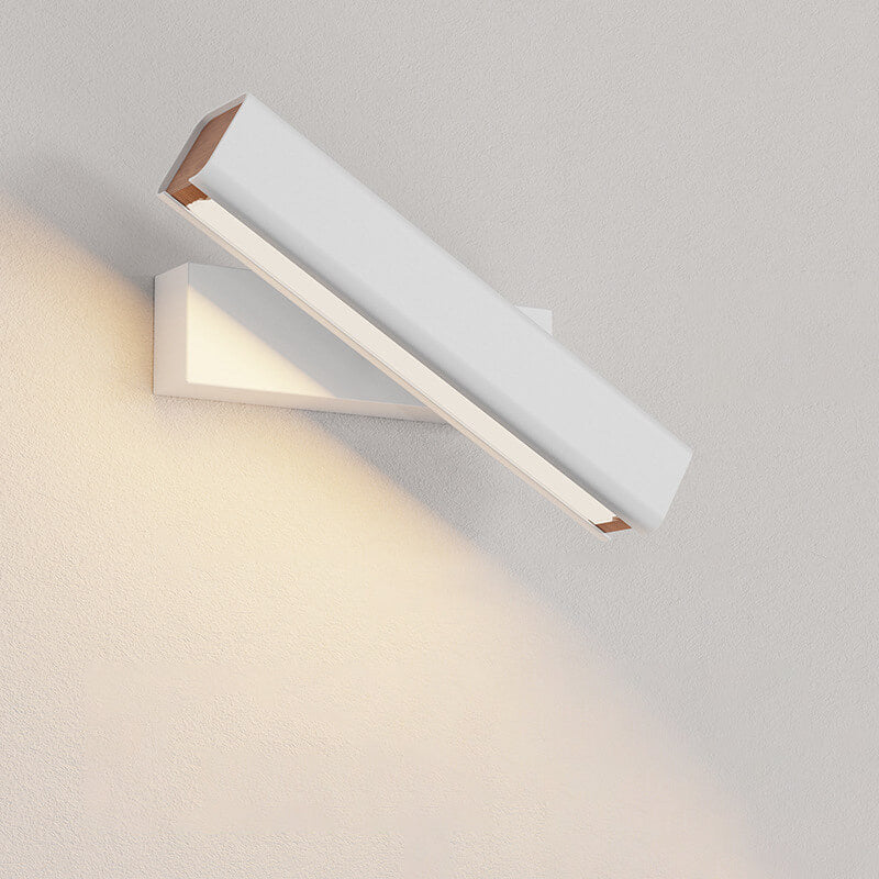 Modern Minimalist Rectangular Aluminum Iron Wood Rotatable LED Wall Sconce Lamp