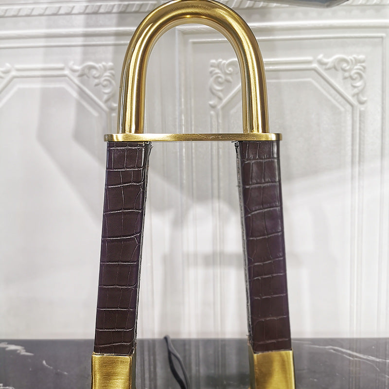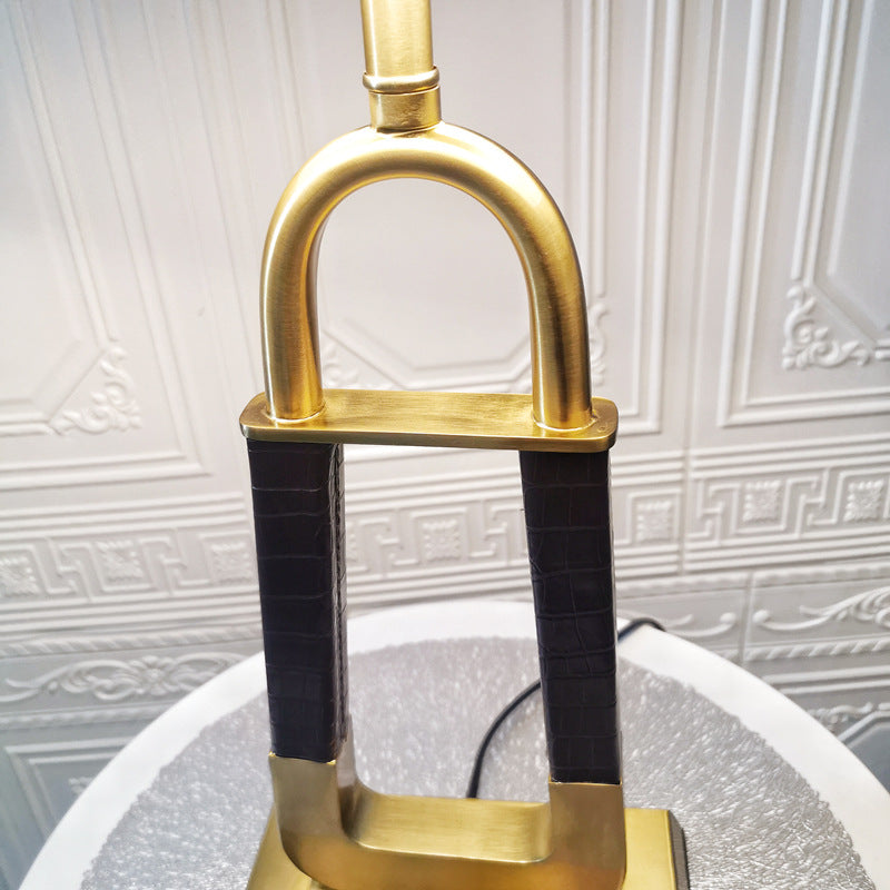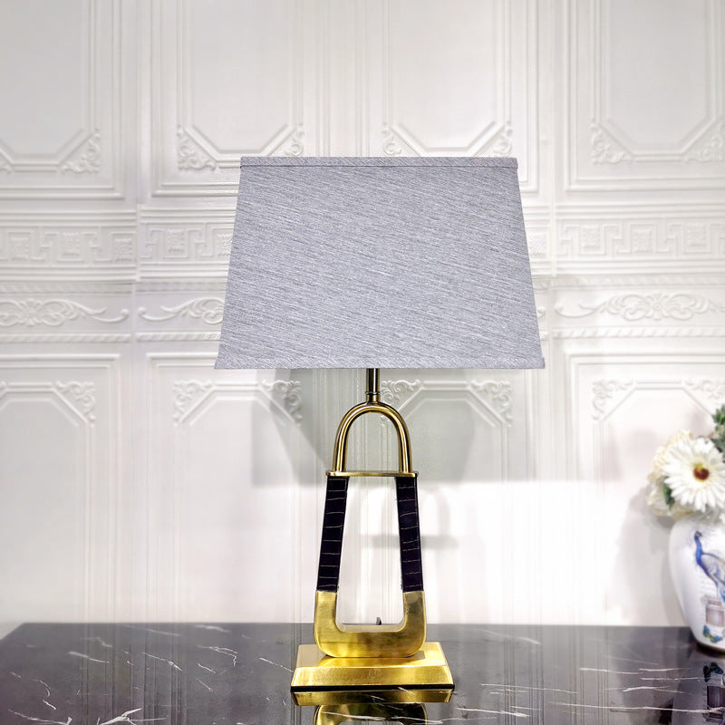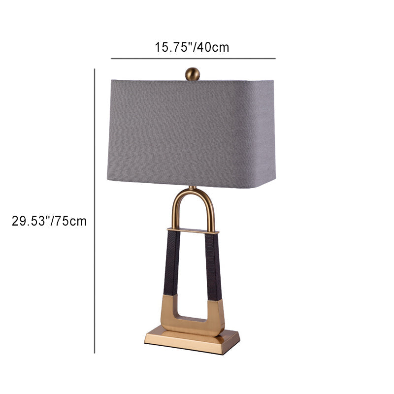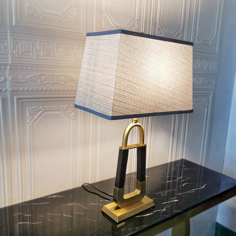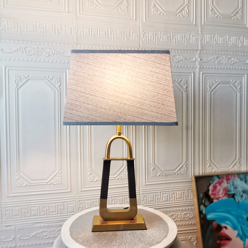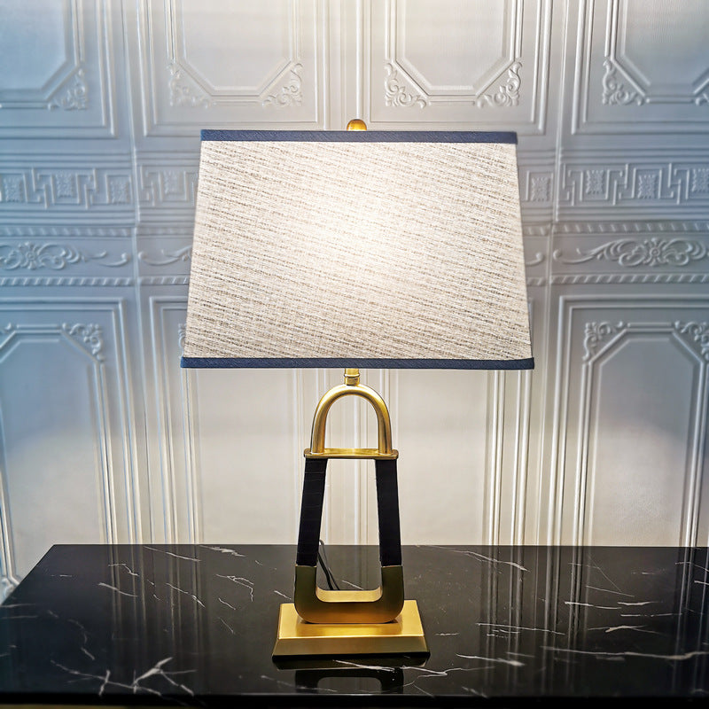 Modern Minimalist Rectangular Metal Leather Fabric 1-Light Table Lamp For Bedroom