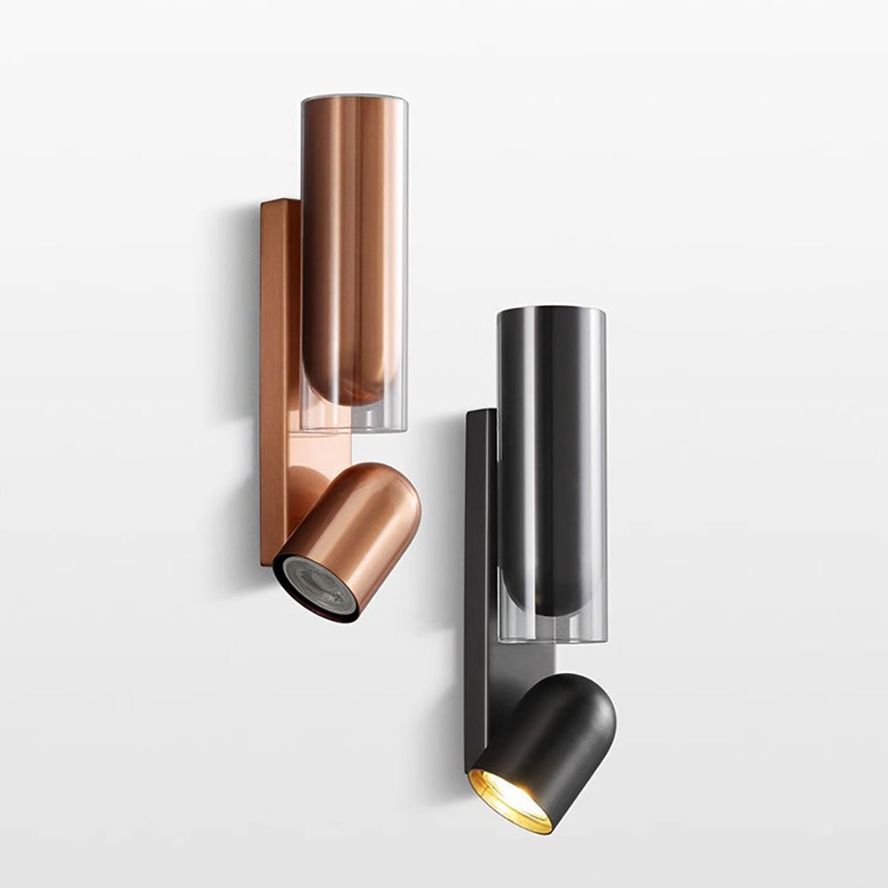 Modern Minimalist Rotatable Cylinder Metal Glass 2-Light Wall Sconce Lamp For Bedroom