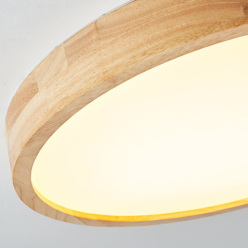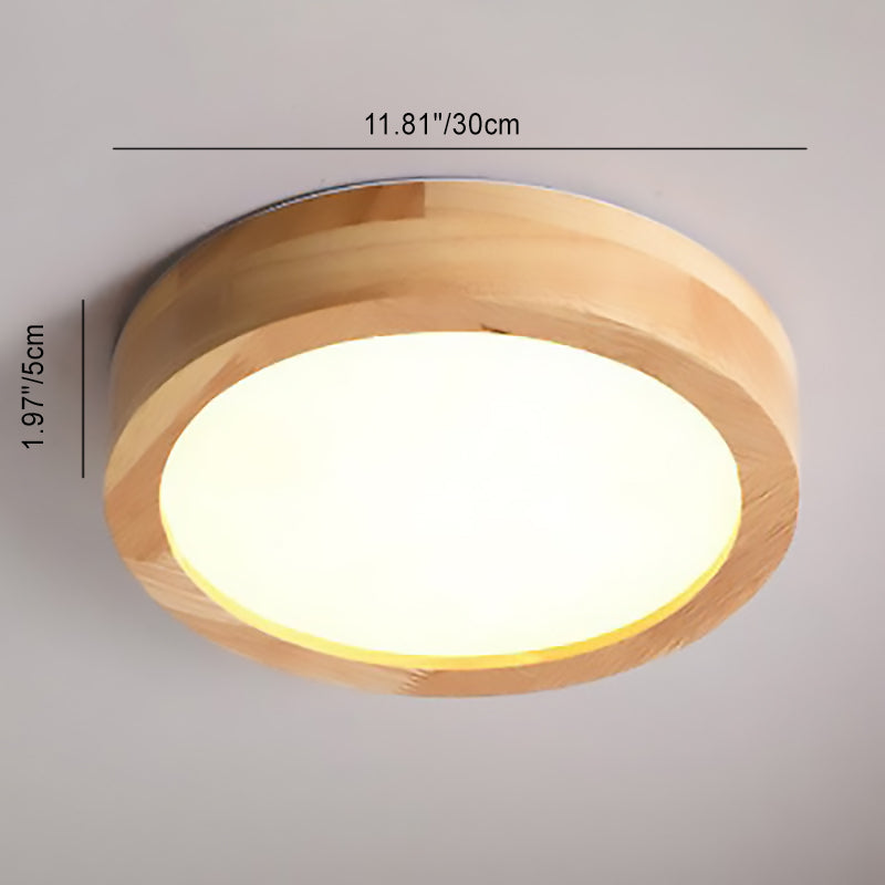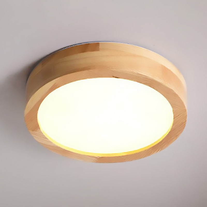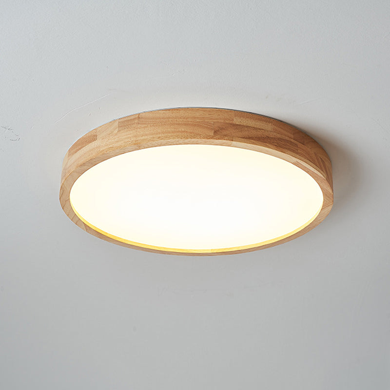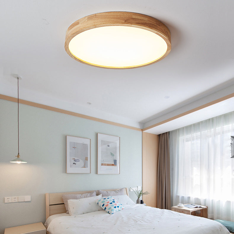 Modern Minimalist Round Acrylic Wood LED Flush Mount Ceiling Light For Bedroom