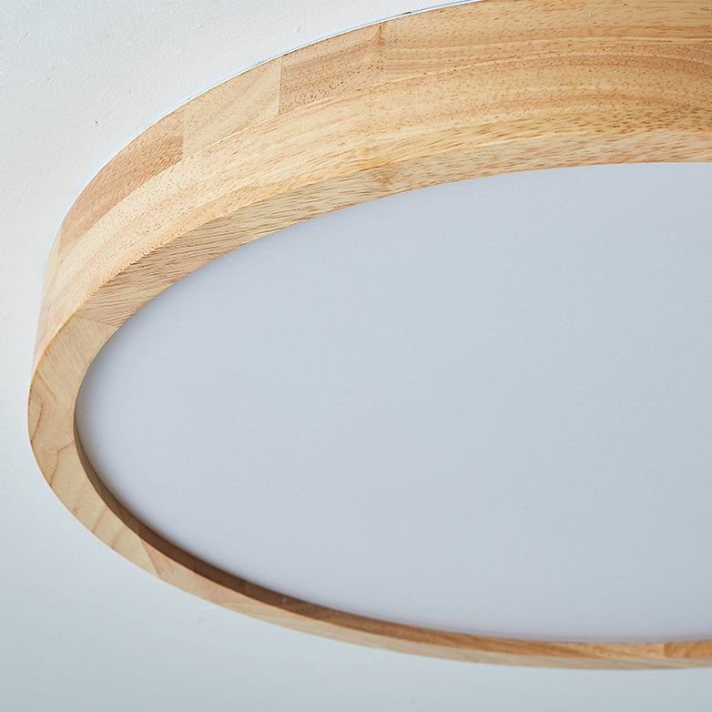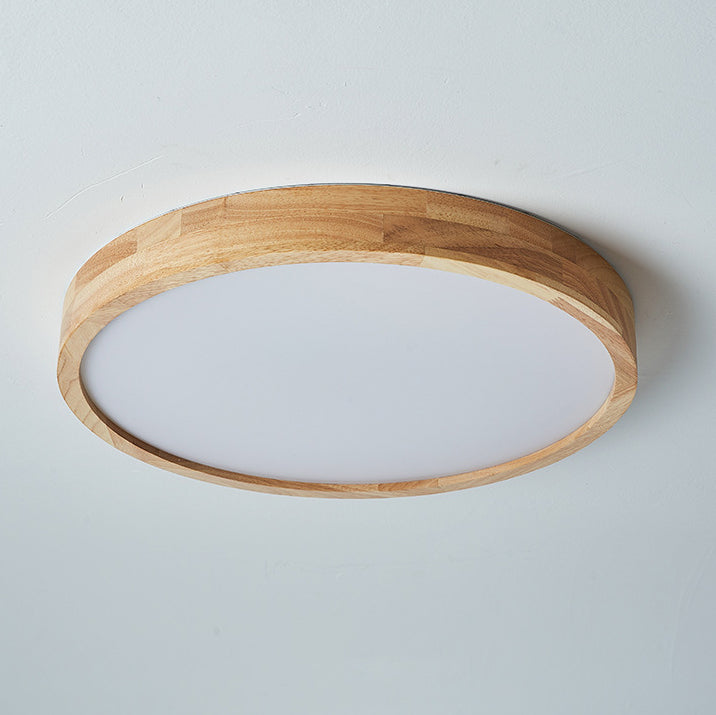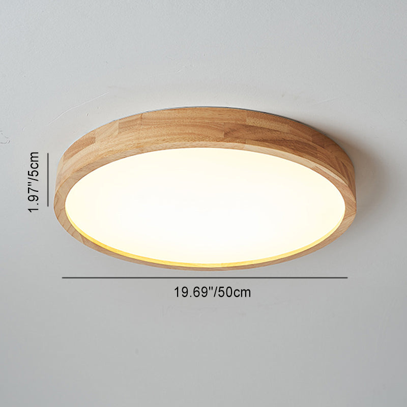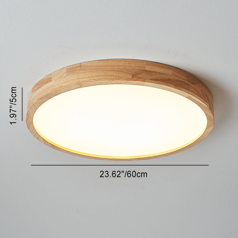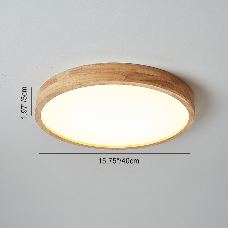 Modern Minimalist Round Acrylic Wood LED Flush Mount Ceiling Light For Bedroom