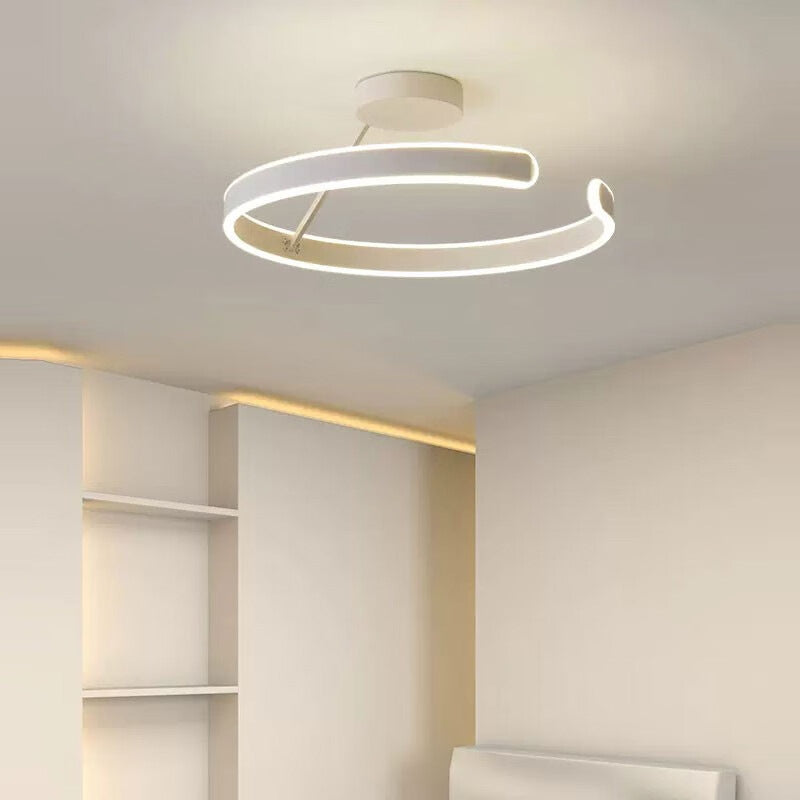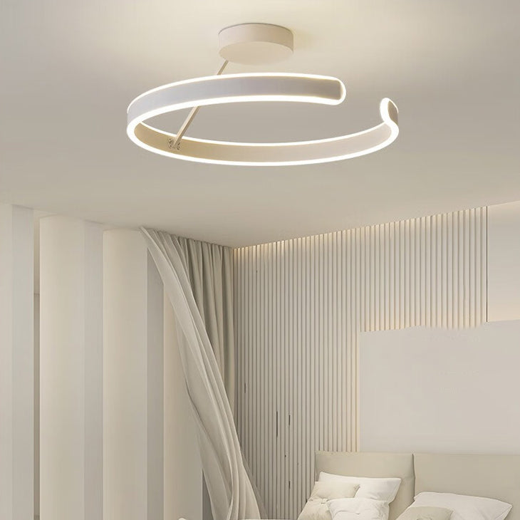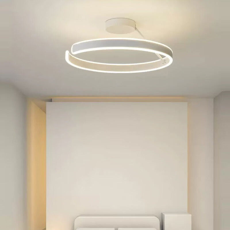 Modern Minimalist Round Aluminium Acrylic LED Semi-Flush Mount Ceiling Light For Bedroom