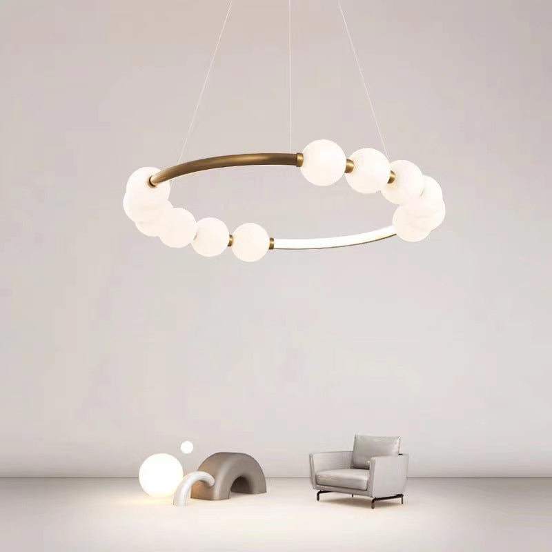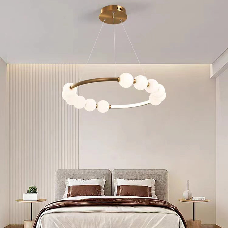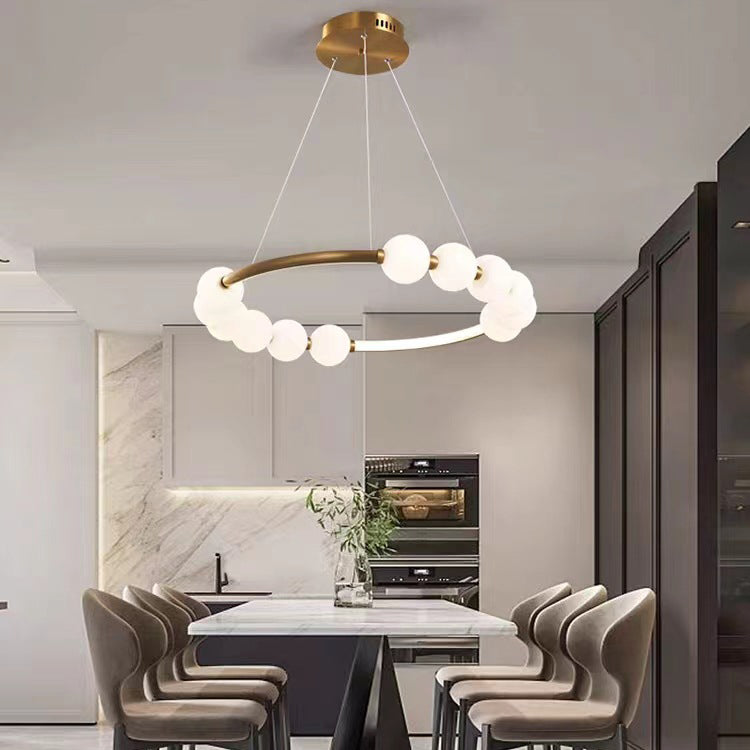 Modern Minimalist Round Aluminum Glass LED Chandelier For Living Room