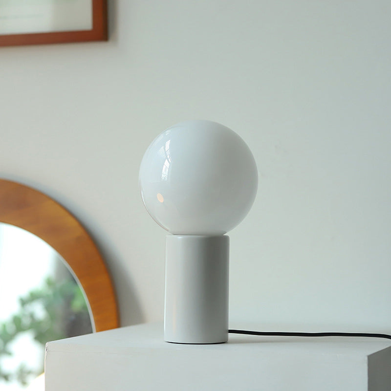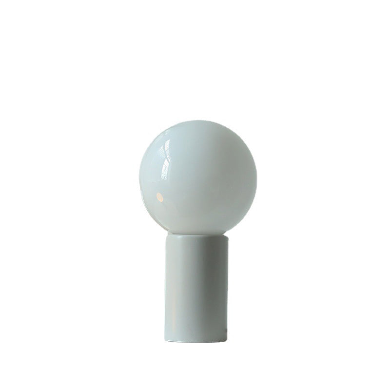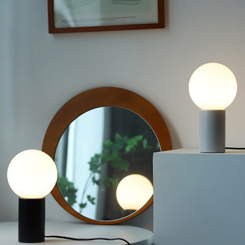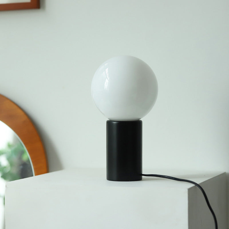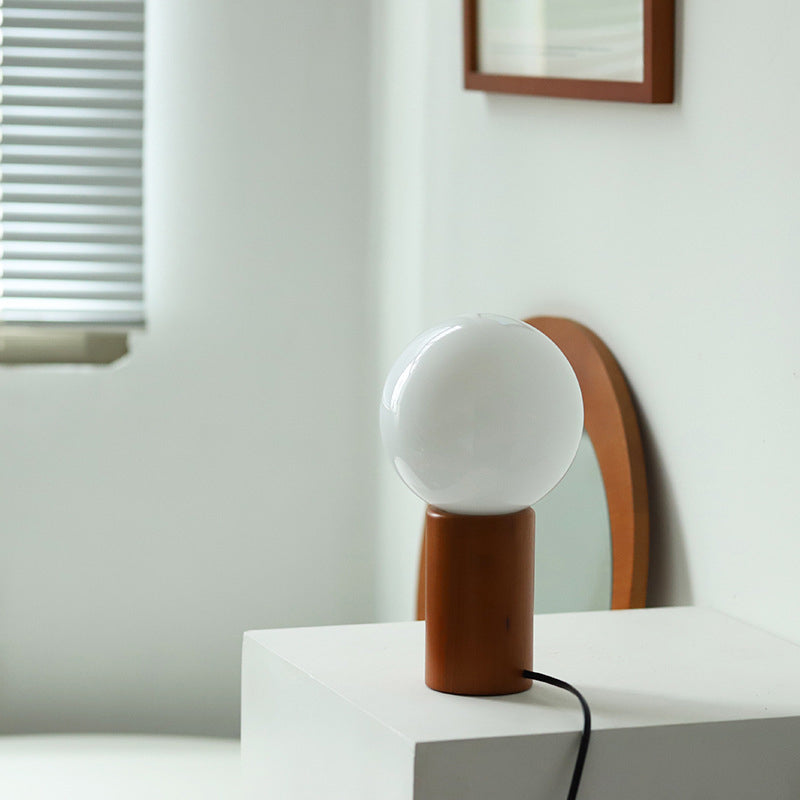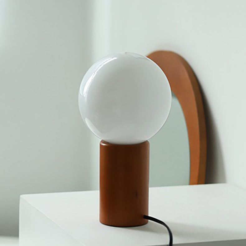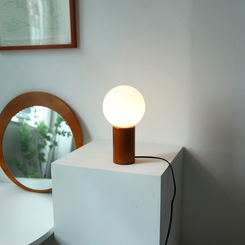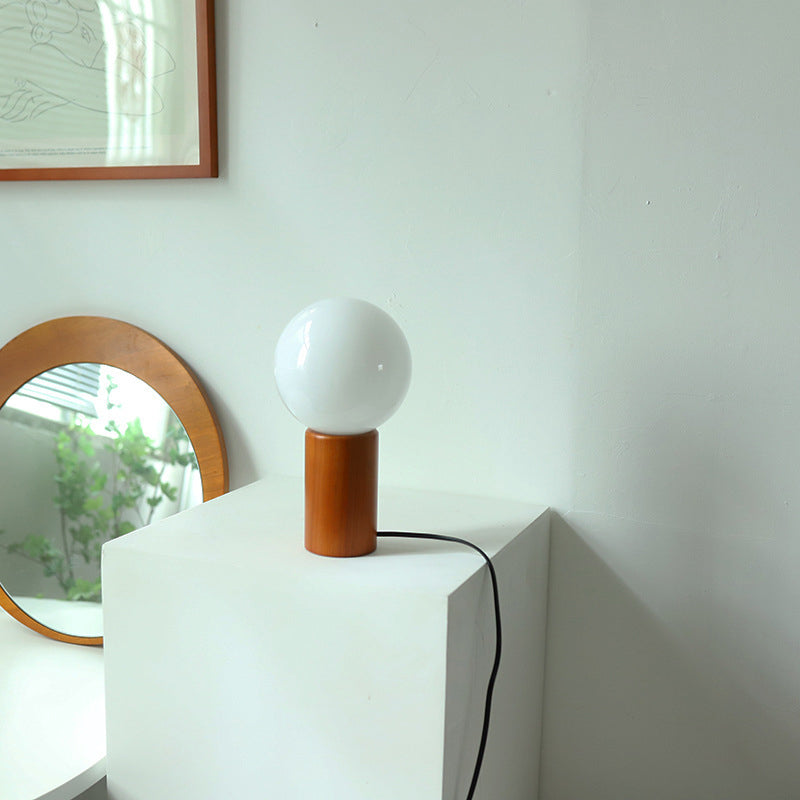Modern Minimalist Round Ball Cylinder Glass Solid Wood 1-Light Table Lamp For Bedroom
