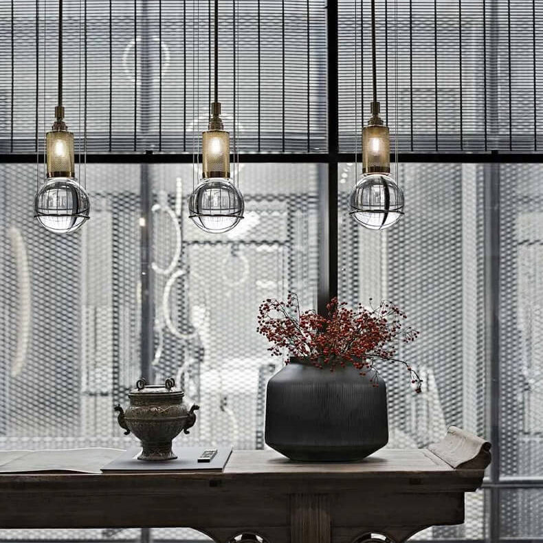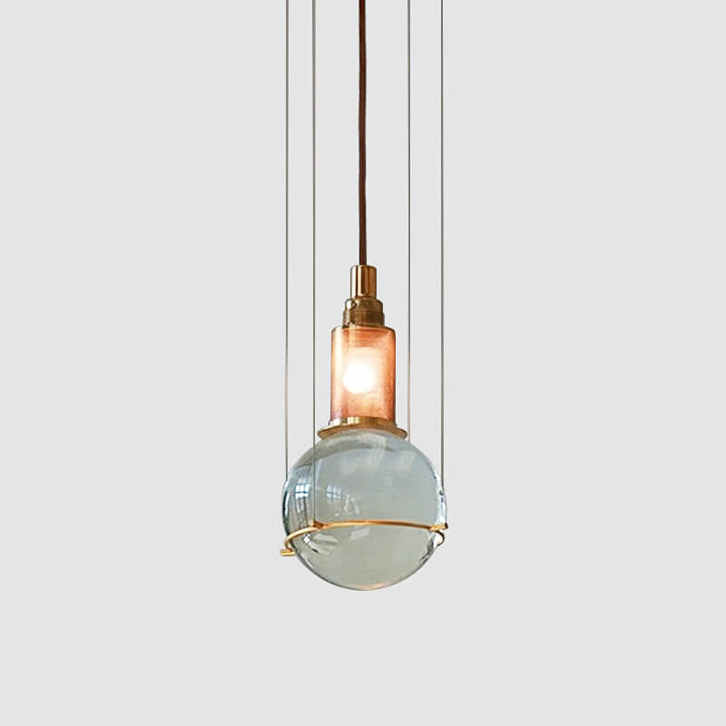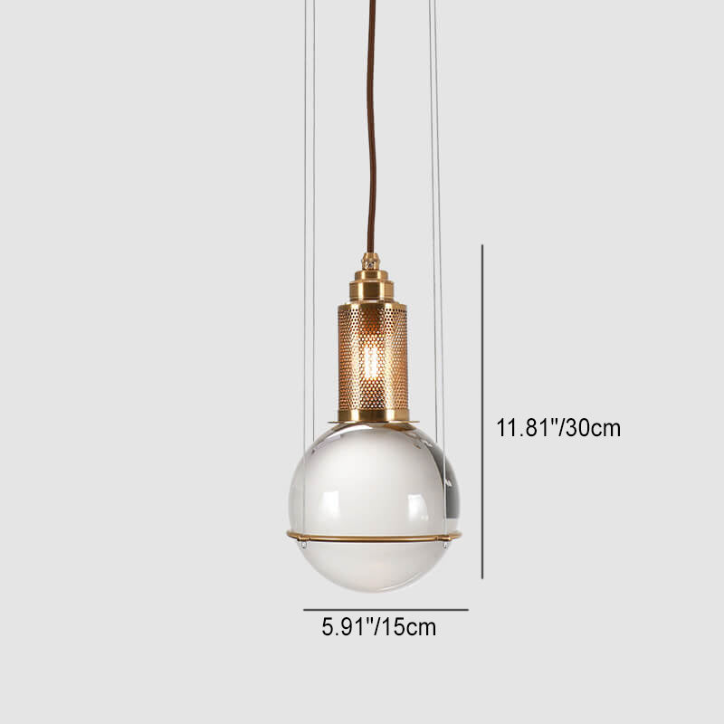 Modern Minimalist Round Ball Cylinder Iron Glass 1-Light Pendant Light For Living Room
