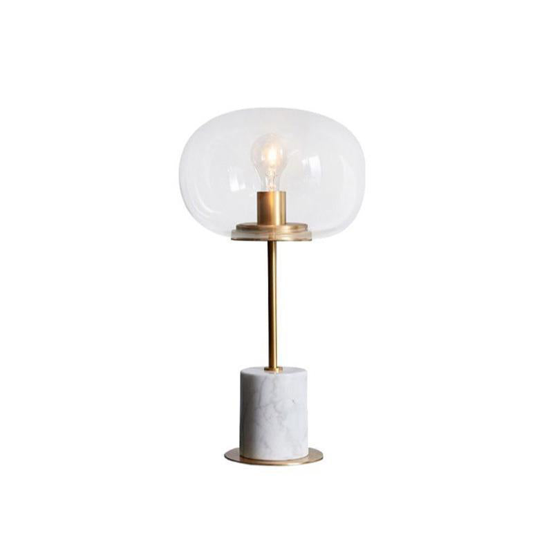Modern Minimalist Round Ball Cylinder Marble Base Iron Glass 1-Light Table Lamp For Living Room