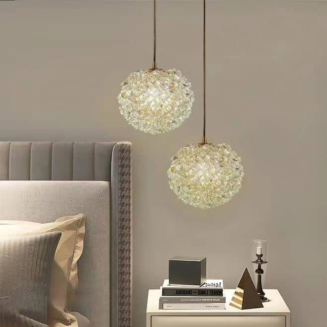 Modern Minimalist Round Ball Full Copper Crystal 1-Light Pendant Light For Bedroom