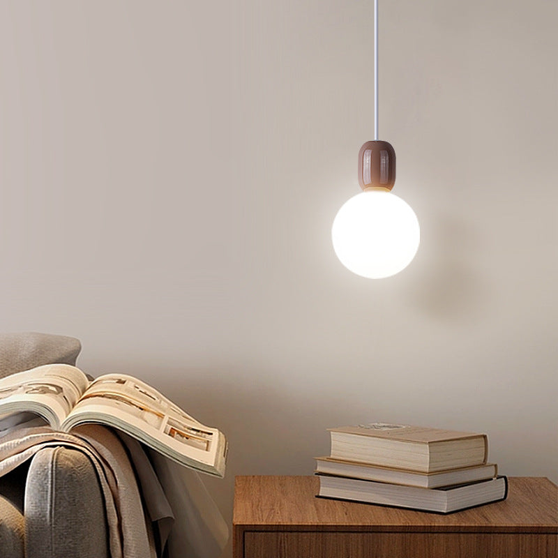 Modern Minimalist Round Ball Hardware Plastic 1-Light Pendant Light For Bedroom