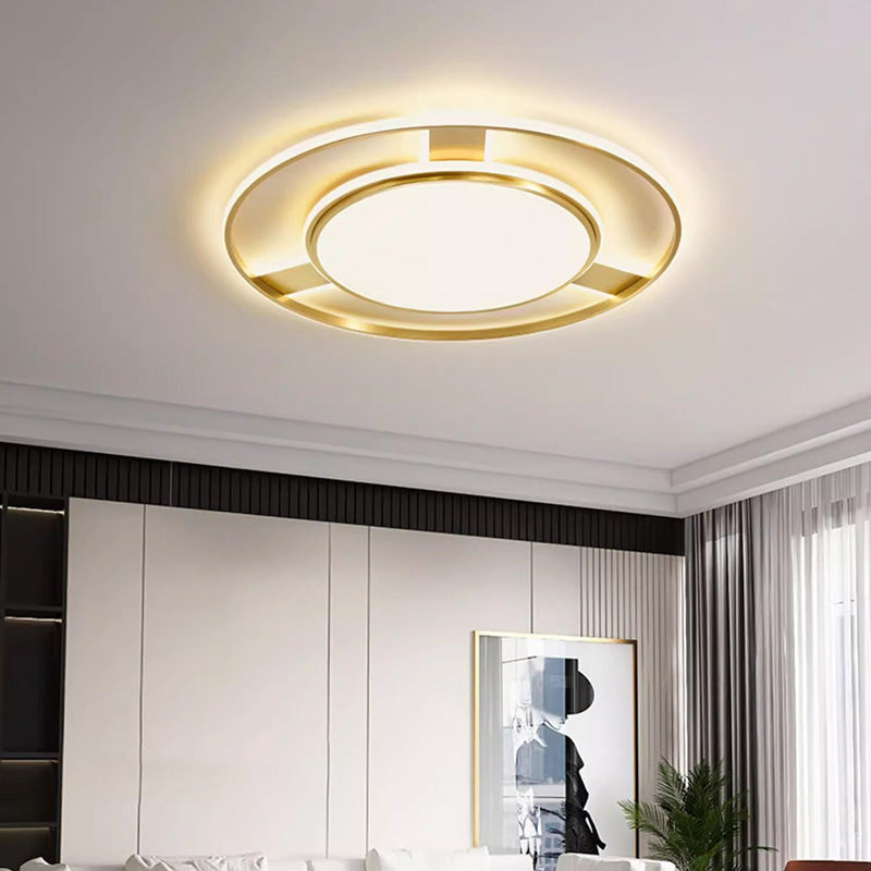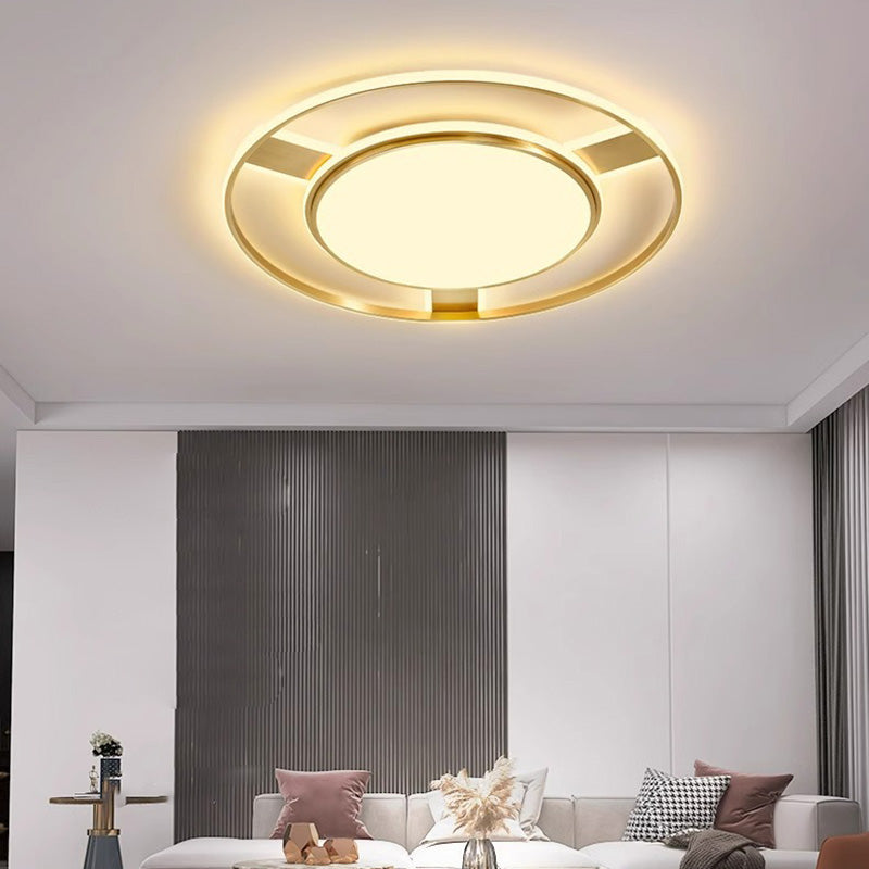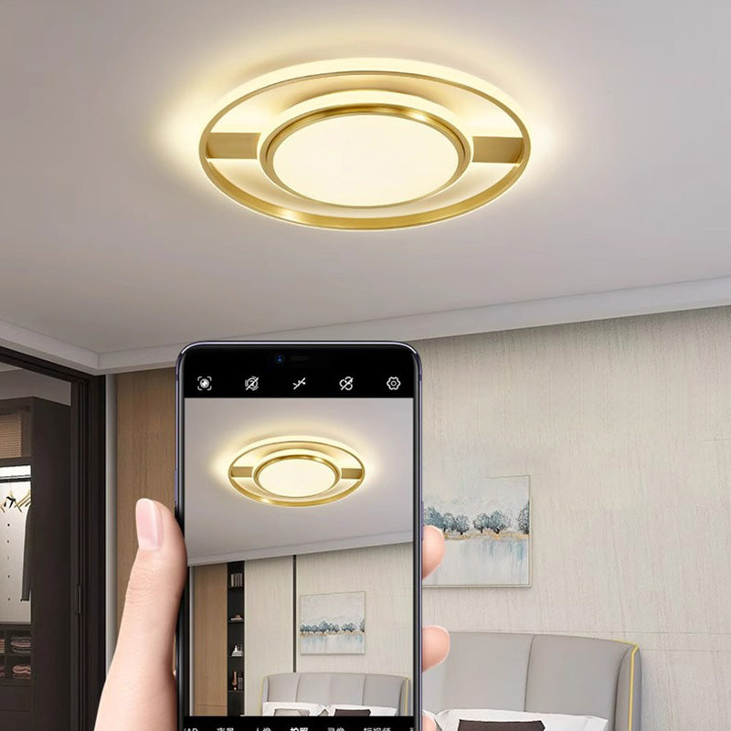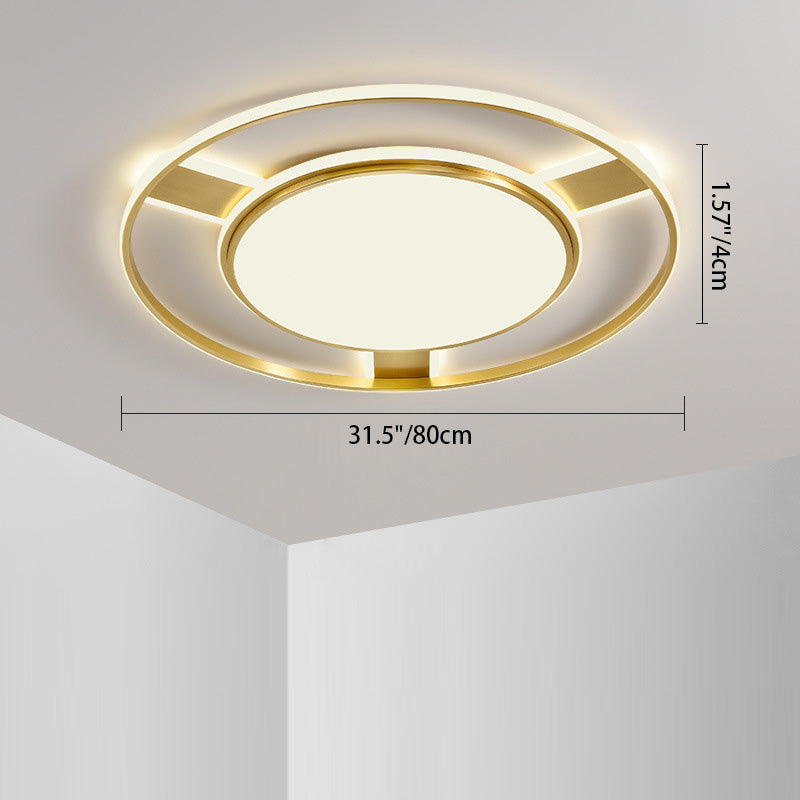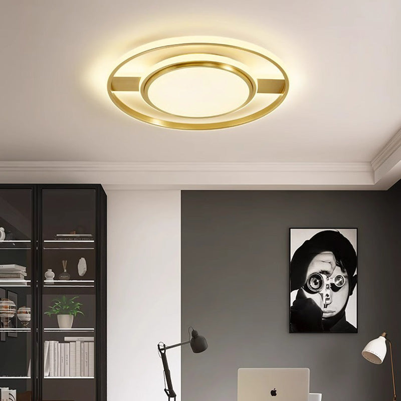 Modern Minimalist Round Circle Rectangle Copper Acrylic Silicone LED Flush Mount Ceiling Light For Living Room