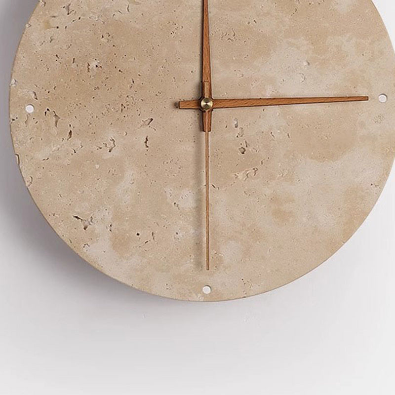 Modern Minimalist Round Clock Yellow Travertine Wood LED Wall Sconce Lamp For Living Room