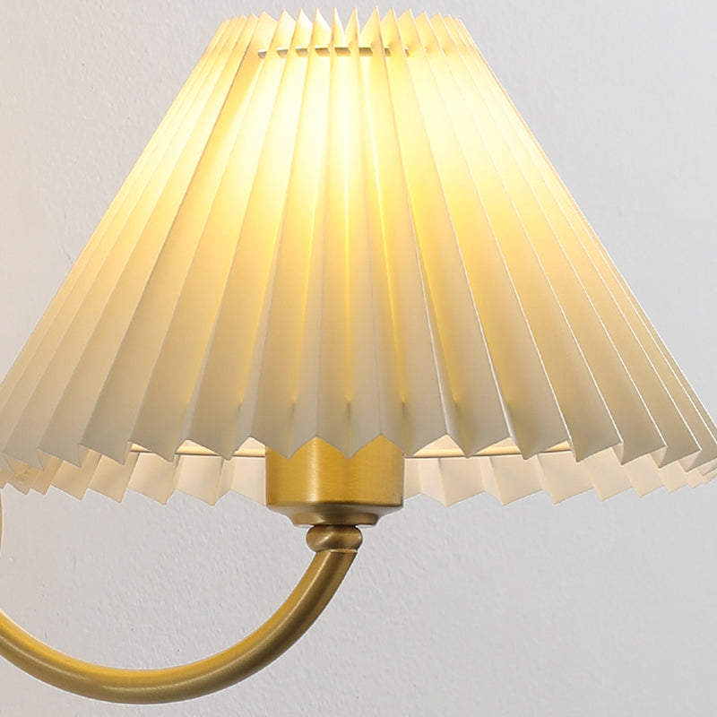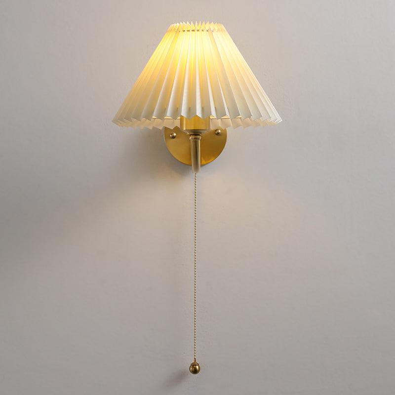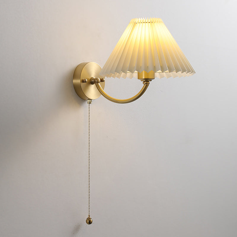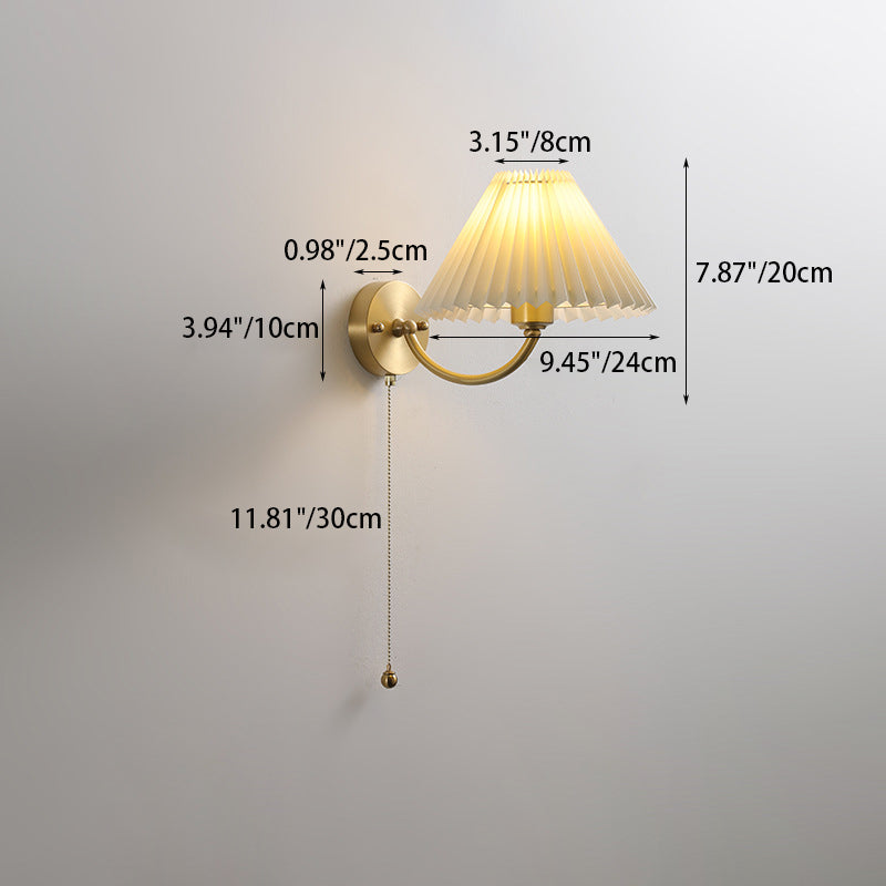 Modern Minimalist Round Cone Curved Rod Fabric Shade Full Copper Frame 1-Light Wall Sconce Lamp For Living Room