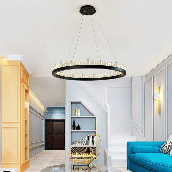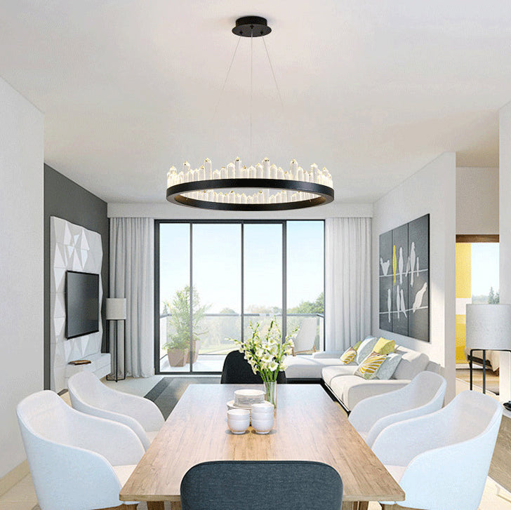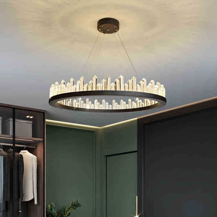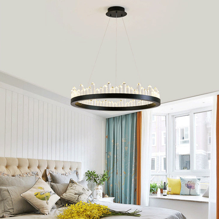 Modern Minimalist Round Crystal Hardware LED Pendant Light For Bedroom