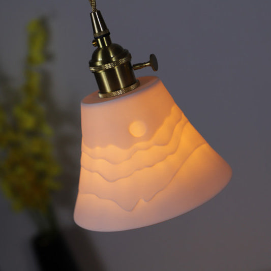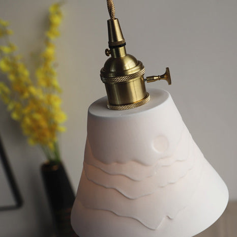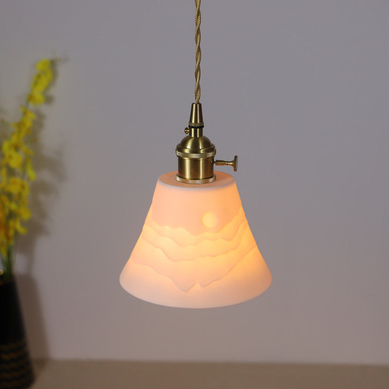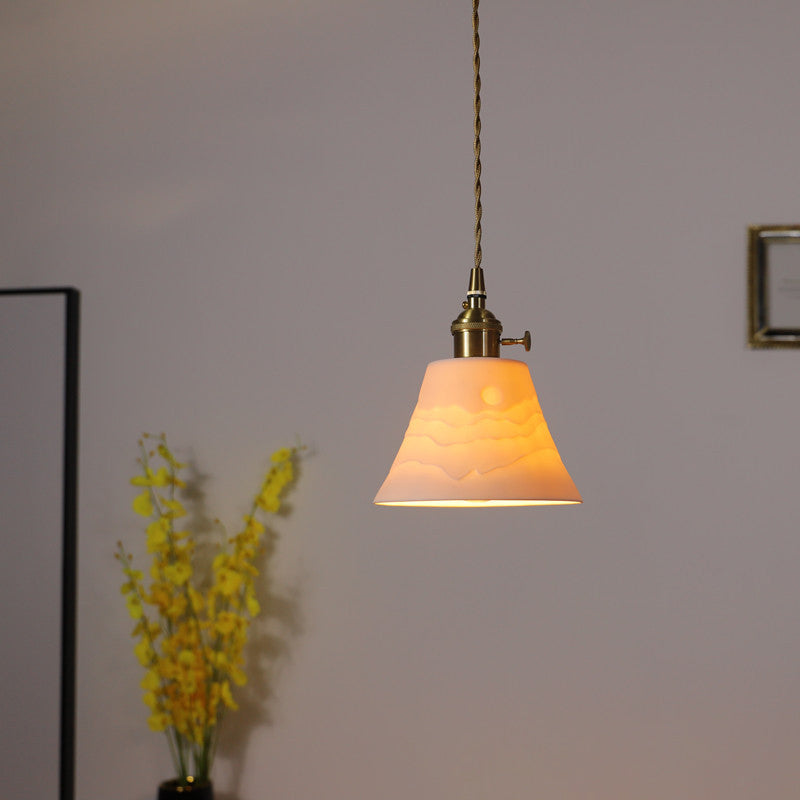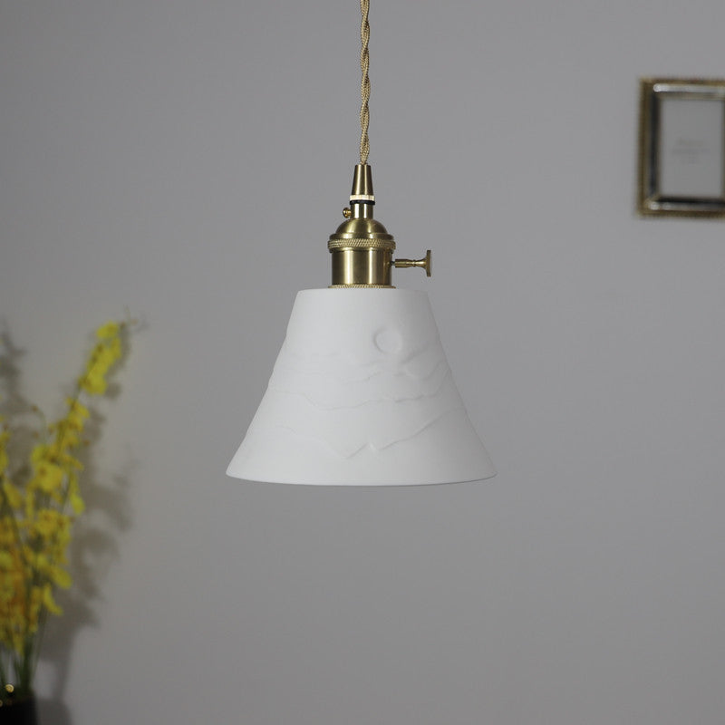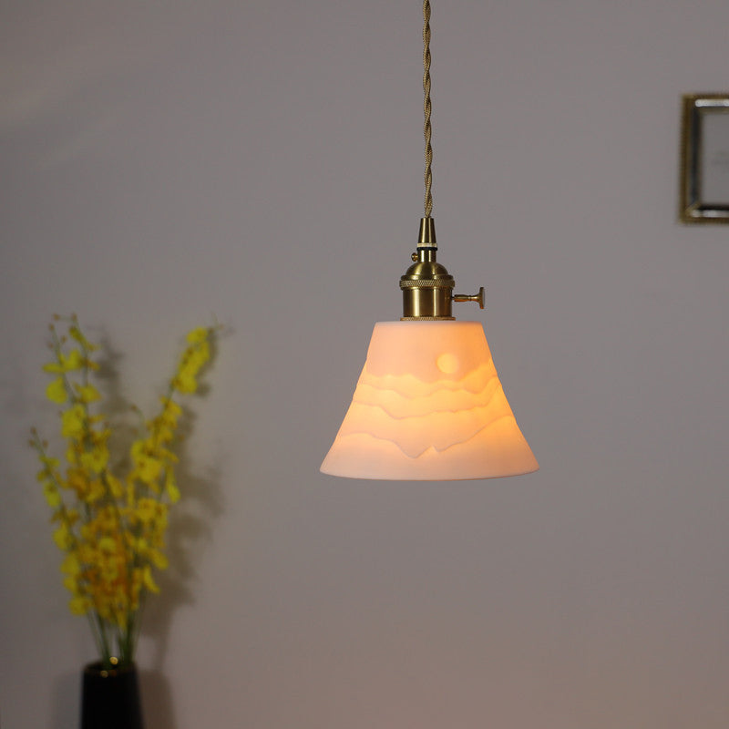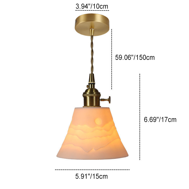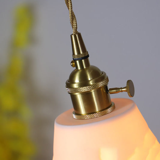 Modern Minimalist Round Cylinder Brass Ceramic 1-Light Pendant Light For Living Room