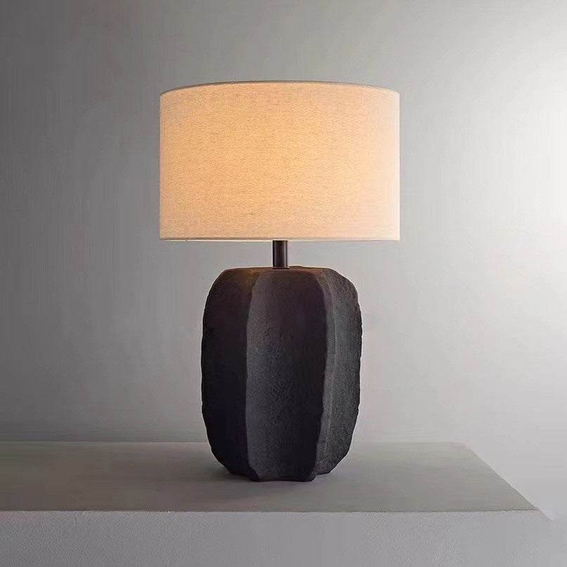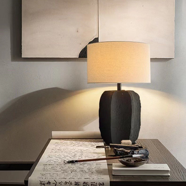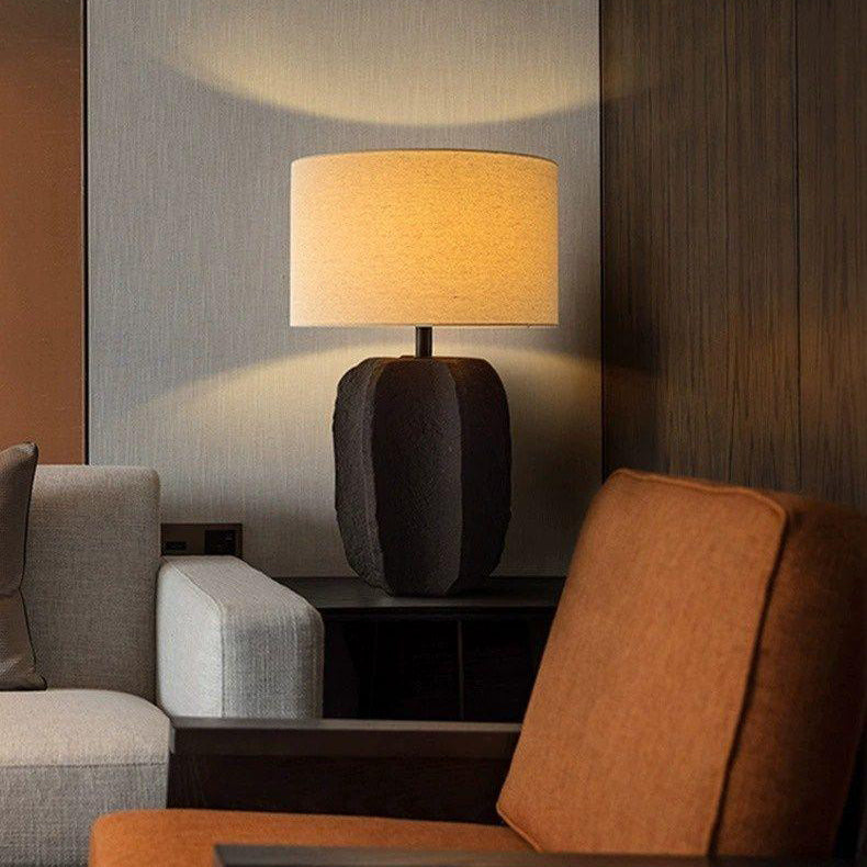 Modern Minimalist Round Cylinder Ceramic Base Fabric 1-Light Table Lamp For Living Room