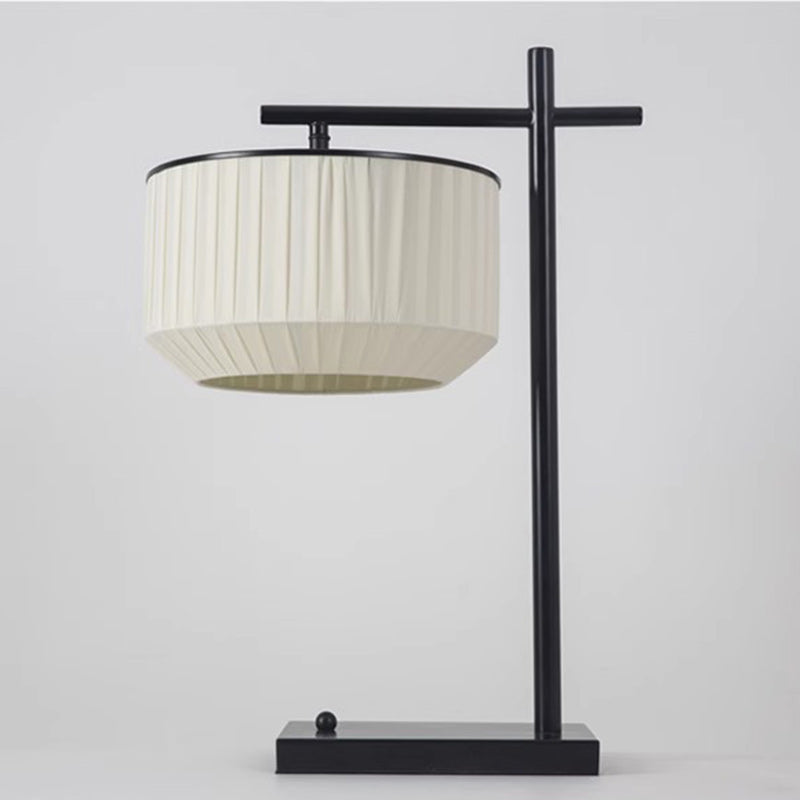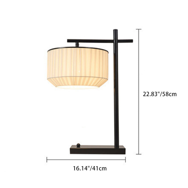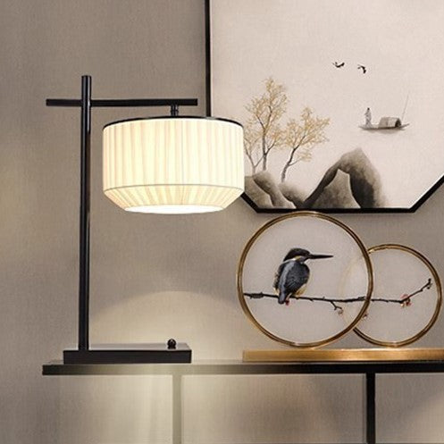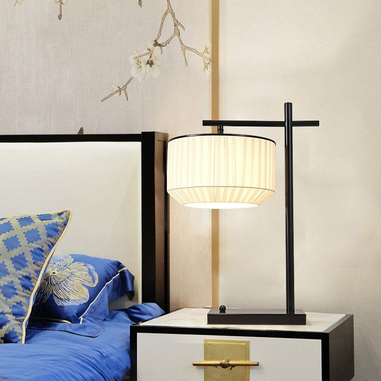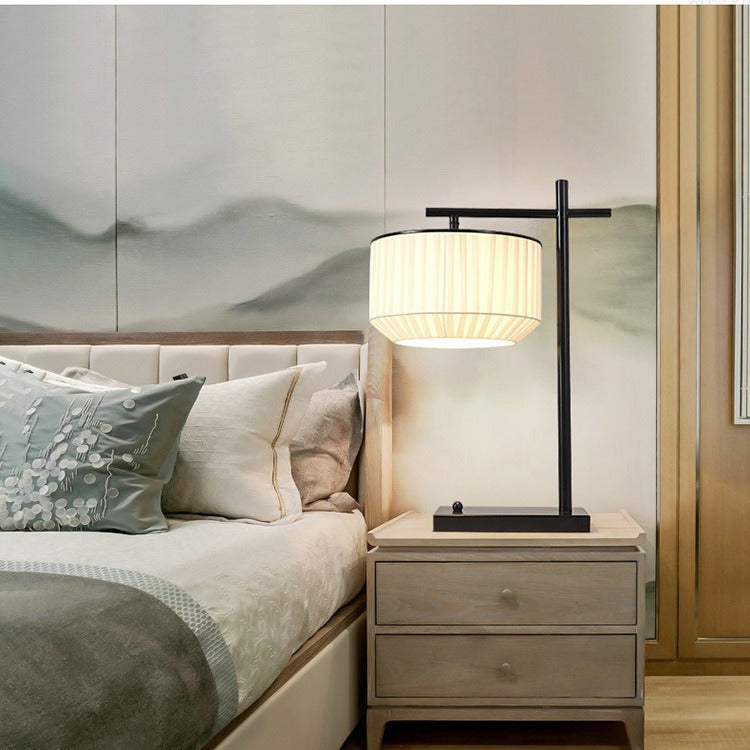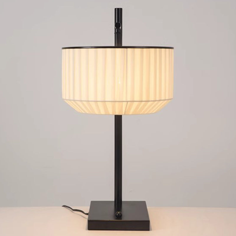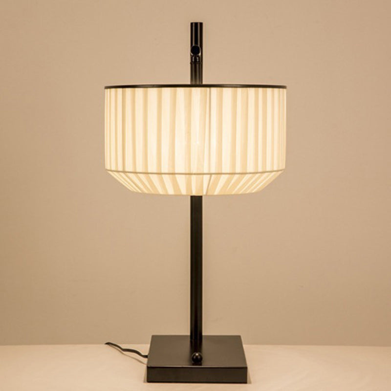 Modern Minimalist Round Cylinder Iron Fabric 1-Light Table Lamp For Bedroom