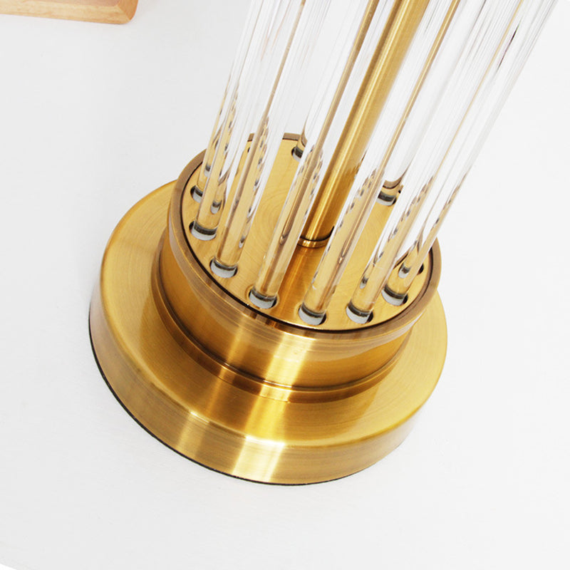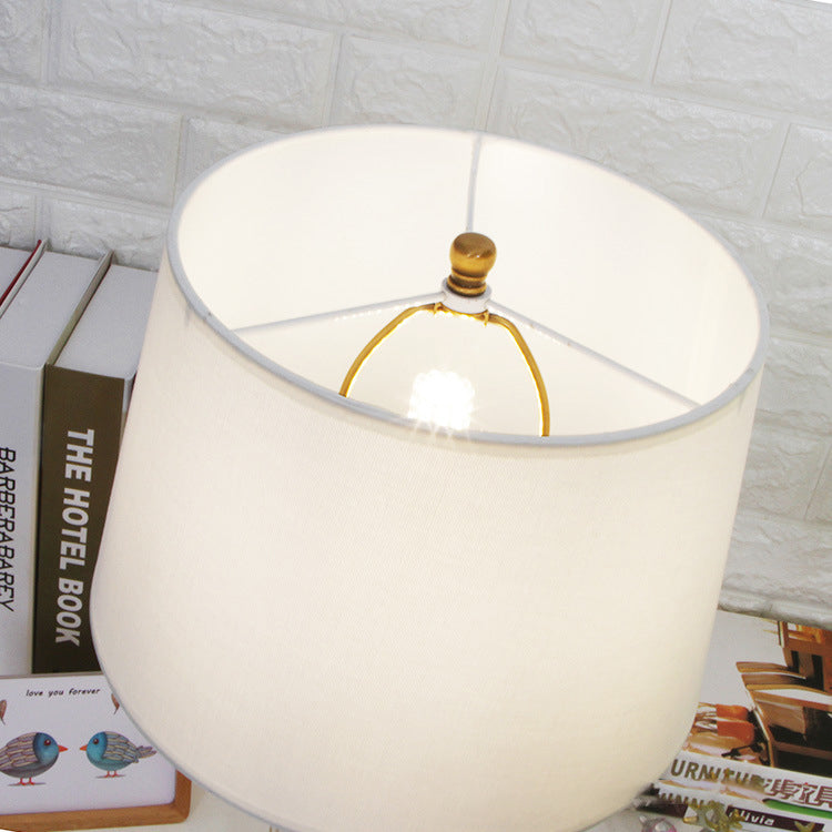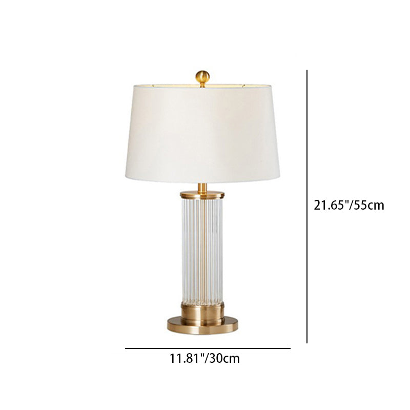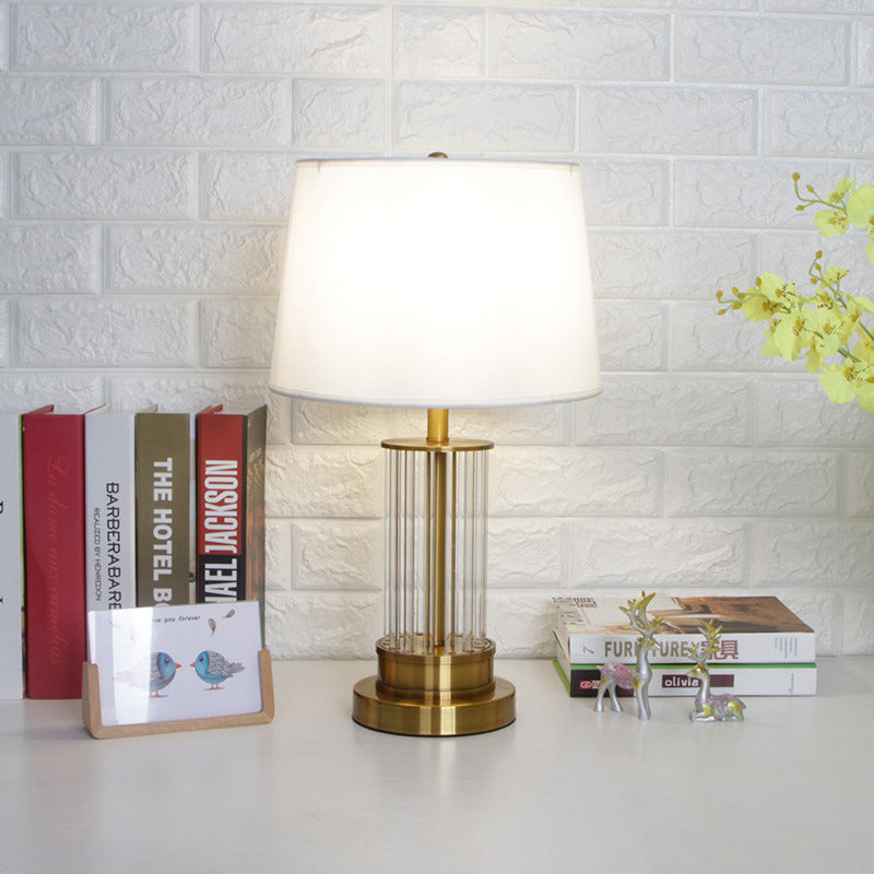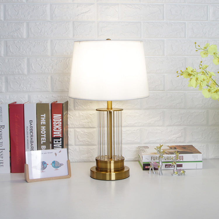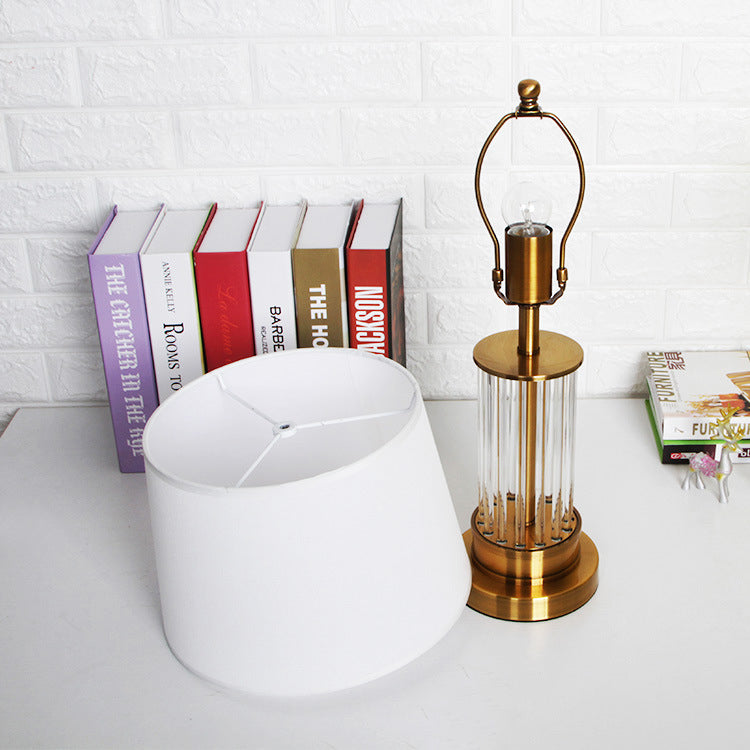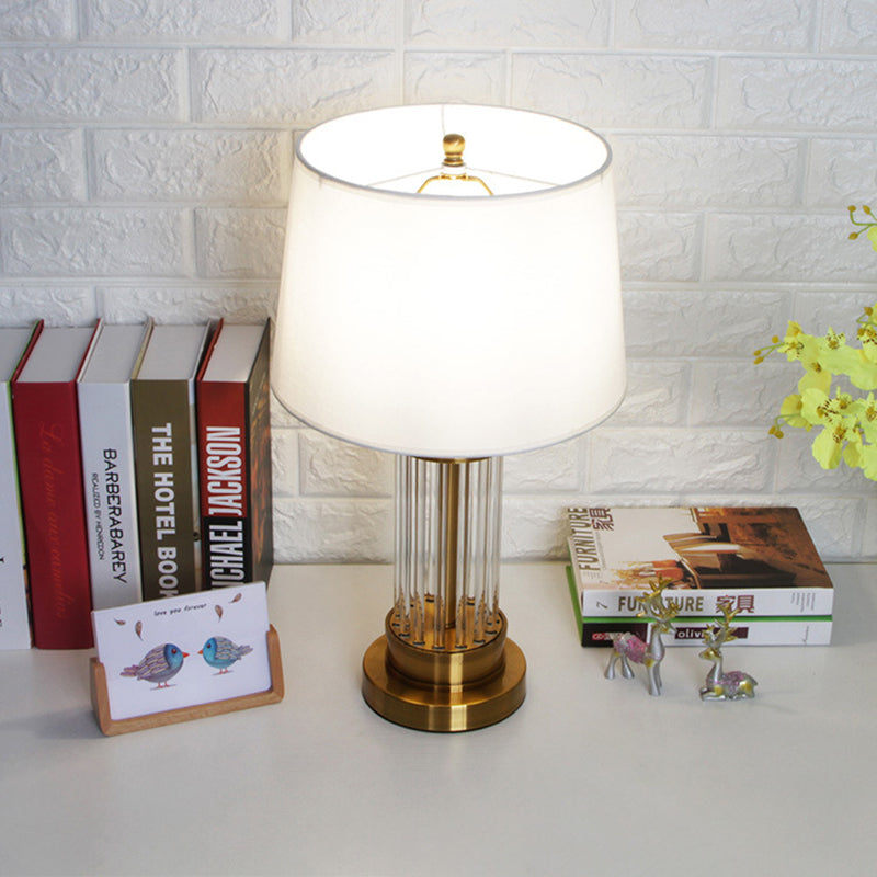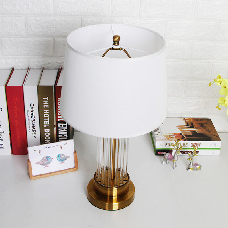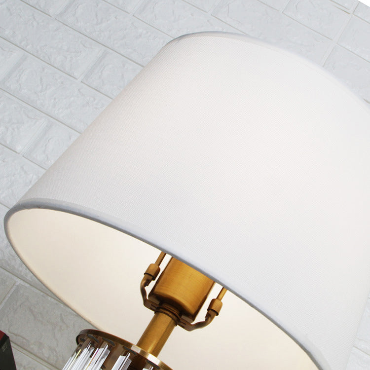 Modern Minimalist Round Cylinder Metal Crystal Fabric 1-Light Table Lamp For Bedroom